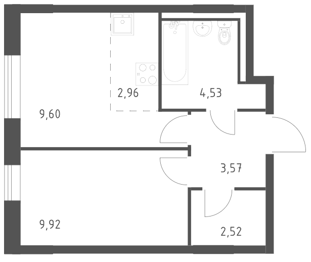 Однокомнатные квартиры (9 квартир, 9 планировок)