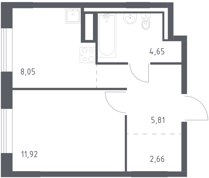 Однокомнатные квартиры (6 квартир, 6 планировок)