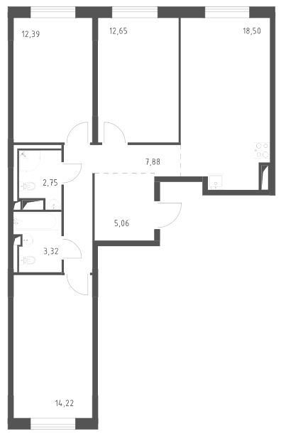 Трехкомнатные квартиры (5 квартир, 5 планировок)