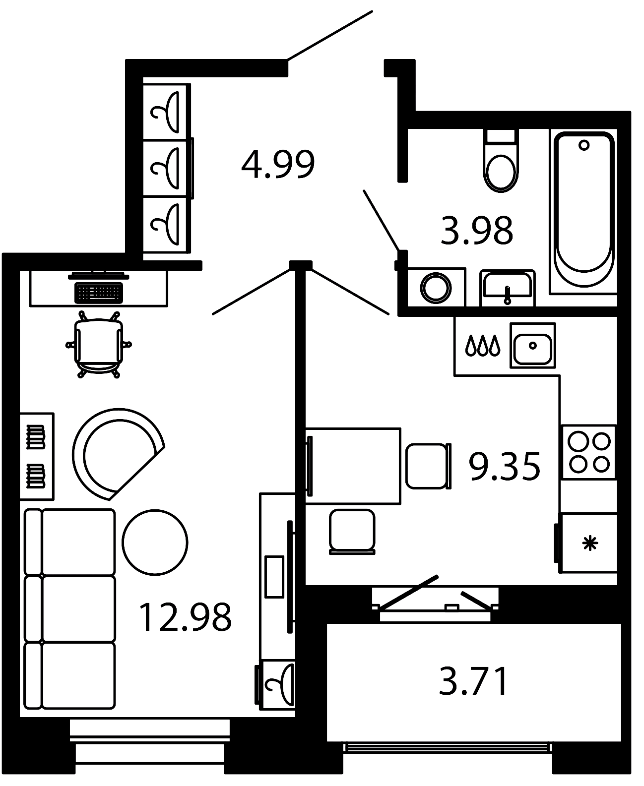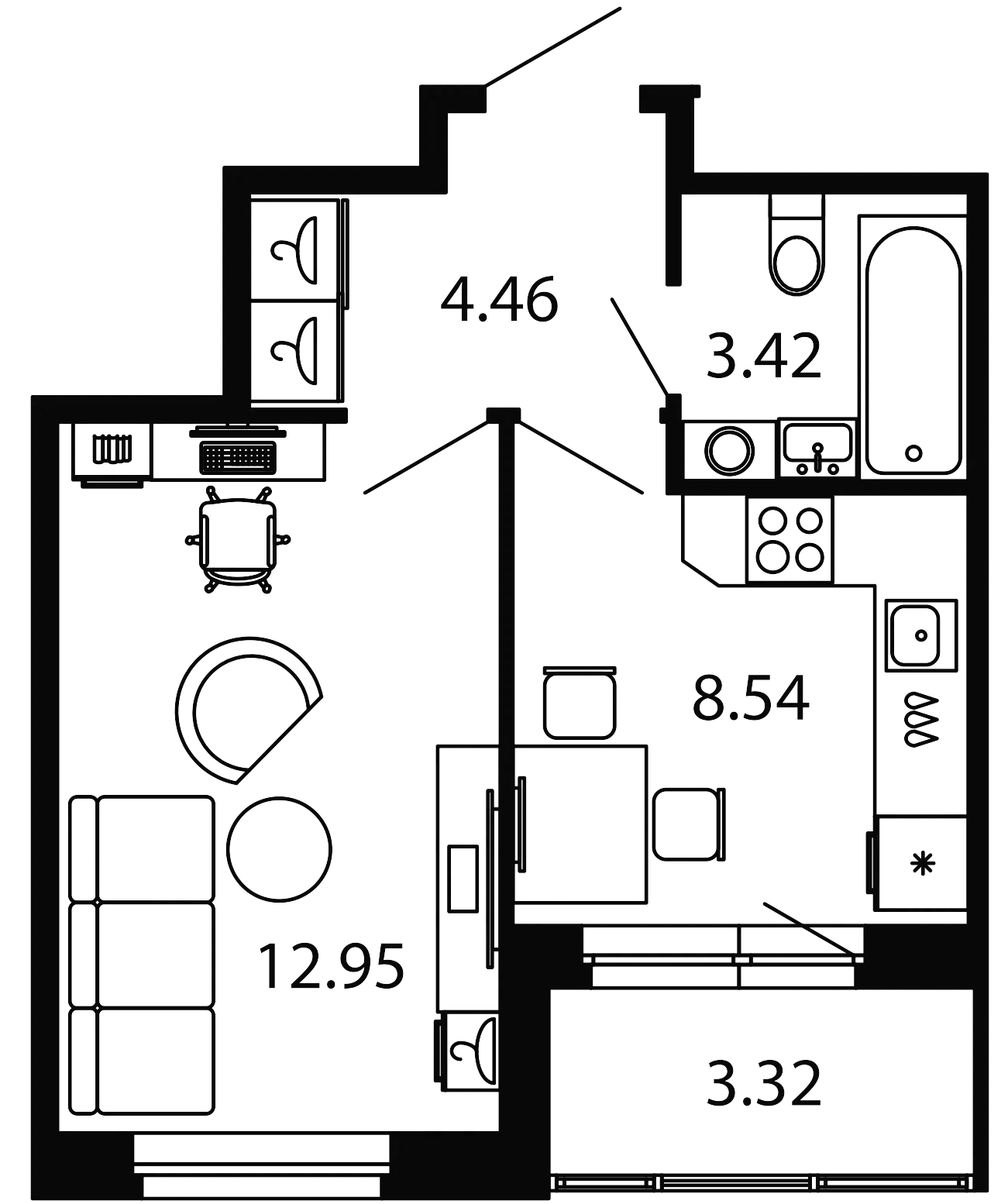 Однокомнатные квартиры (9 квартир, 9 планировок)