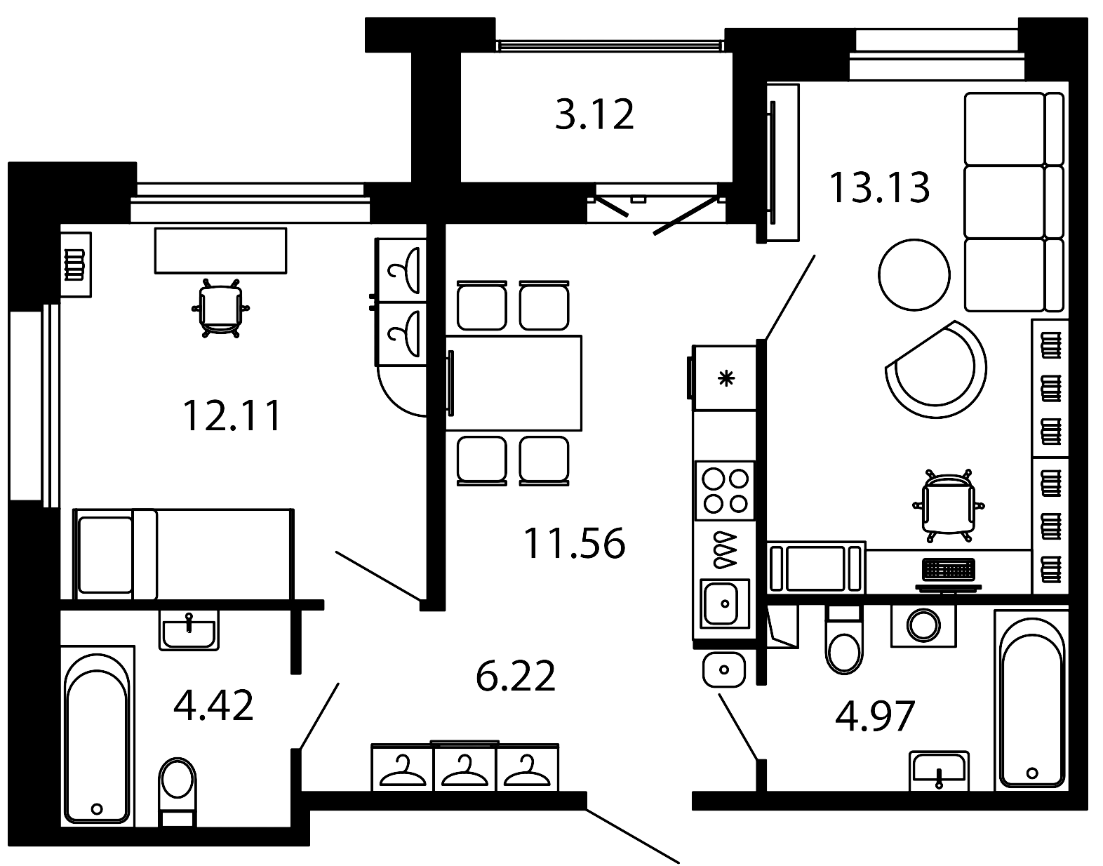 Двухкомнатные квартиры (7 квартир, 7 планировок)