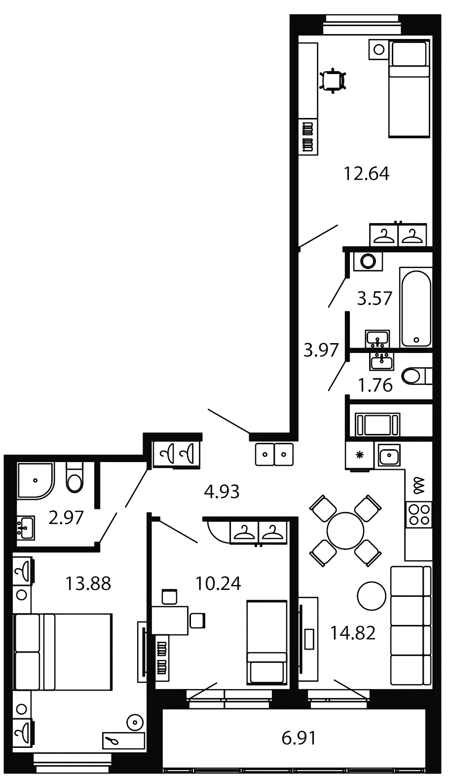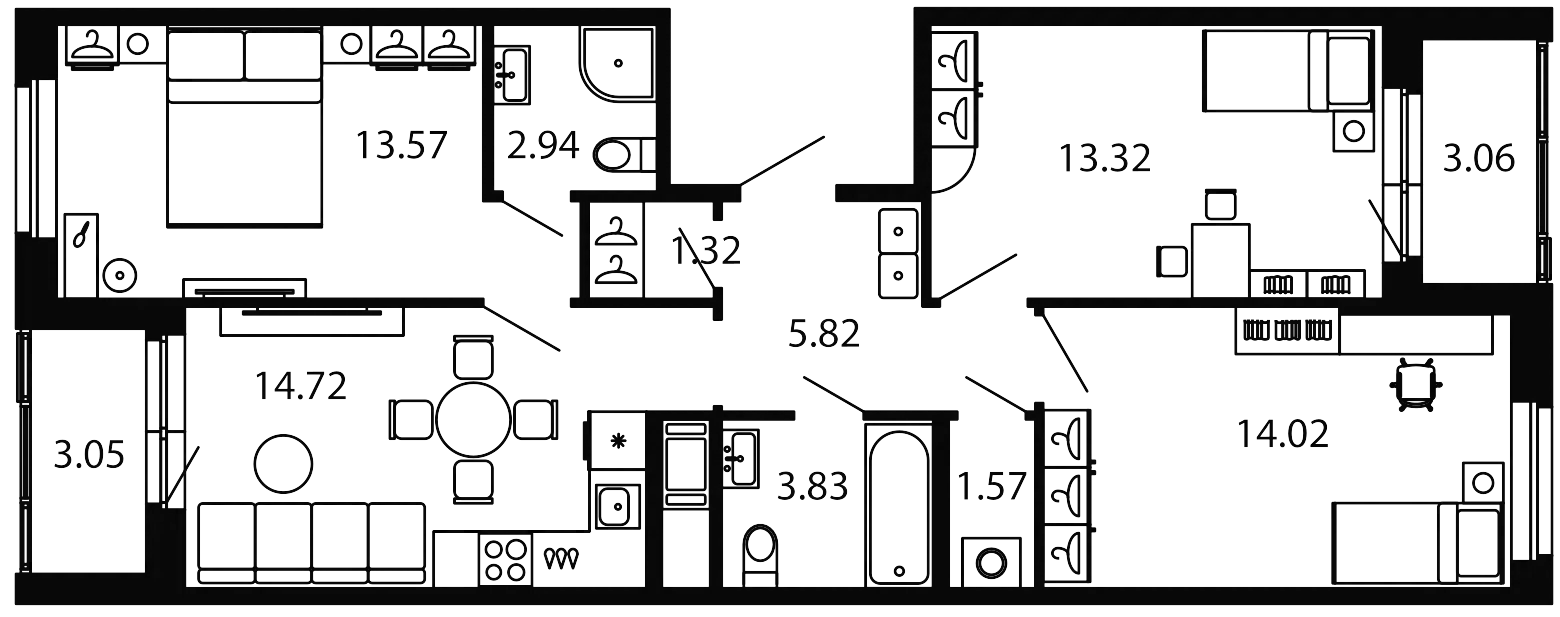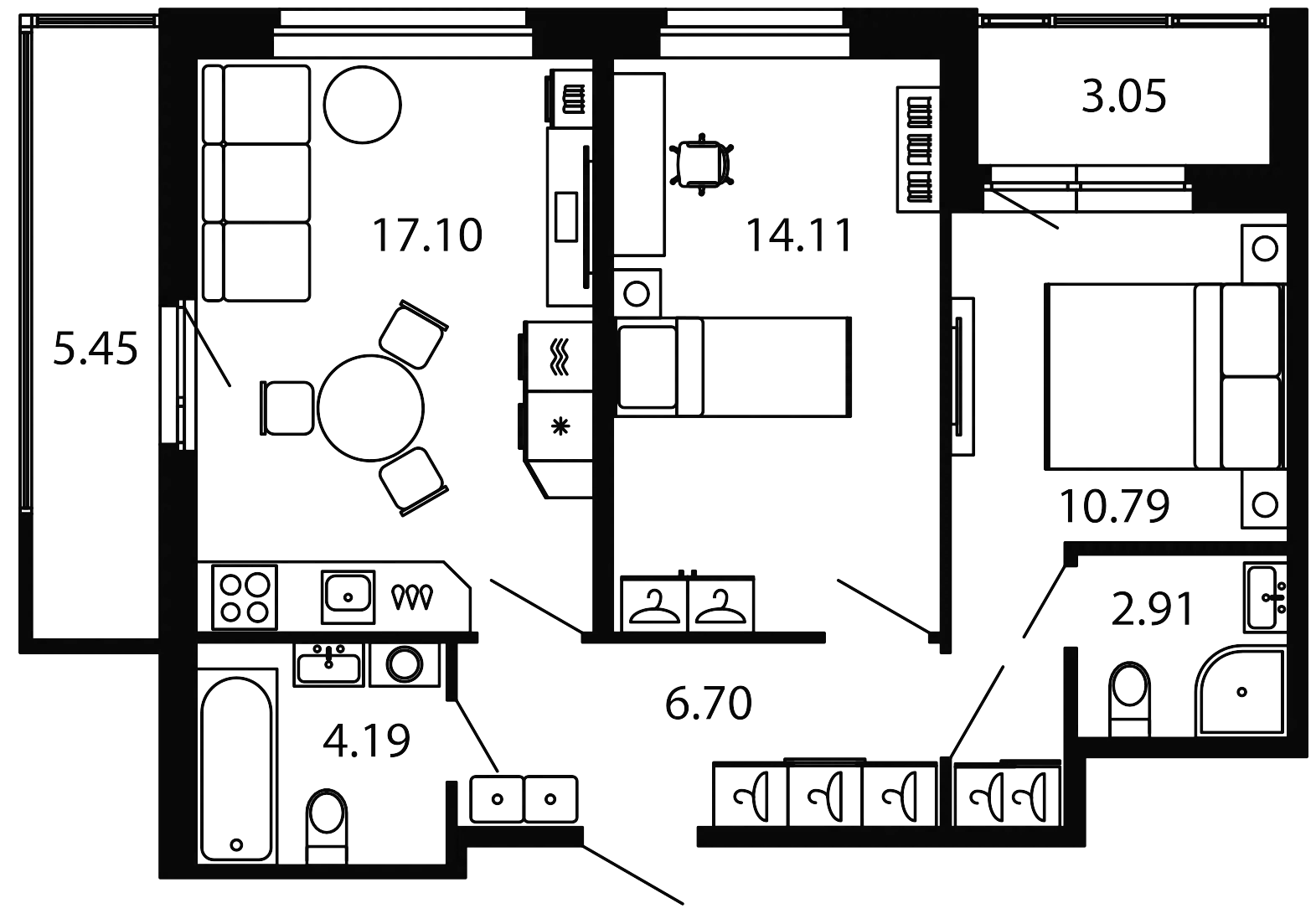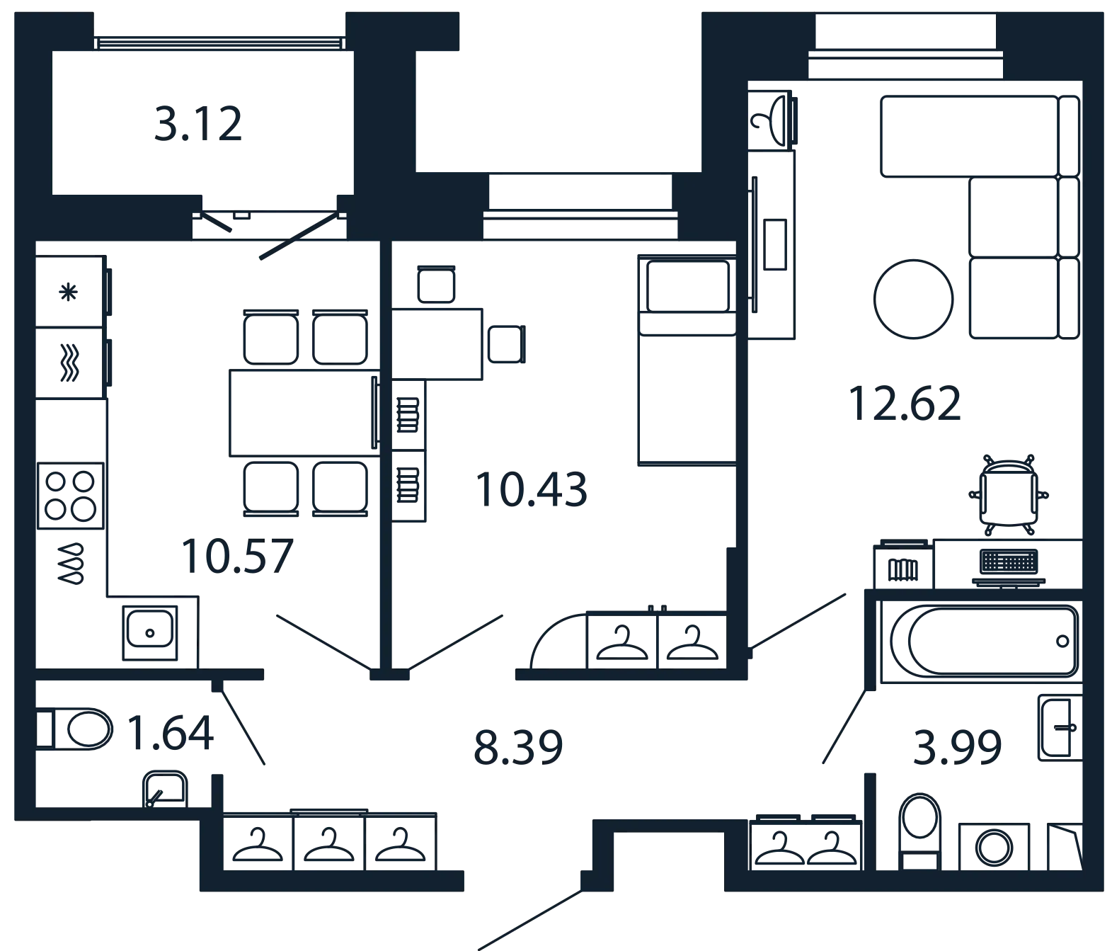 Квартиры представлены от студий до трехкомнатных квартир, в корпус 1,2 застройщик предлагает квартиры с террасами. Коммуникации будут вынесены в общий коридор, за счет чего достигается правильная форма кухонь. Есть варианты с кухнями-нишами, мастер-спальнями, гардеробными. Квартиры передаются с предчистовой или чистовой отделкой в зависимости от выбранной секции. В подъездах будут колясочные и места для парковки велосипедов, дворовая территория закрыта и благоустроена.