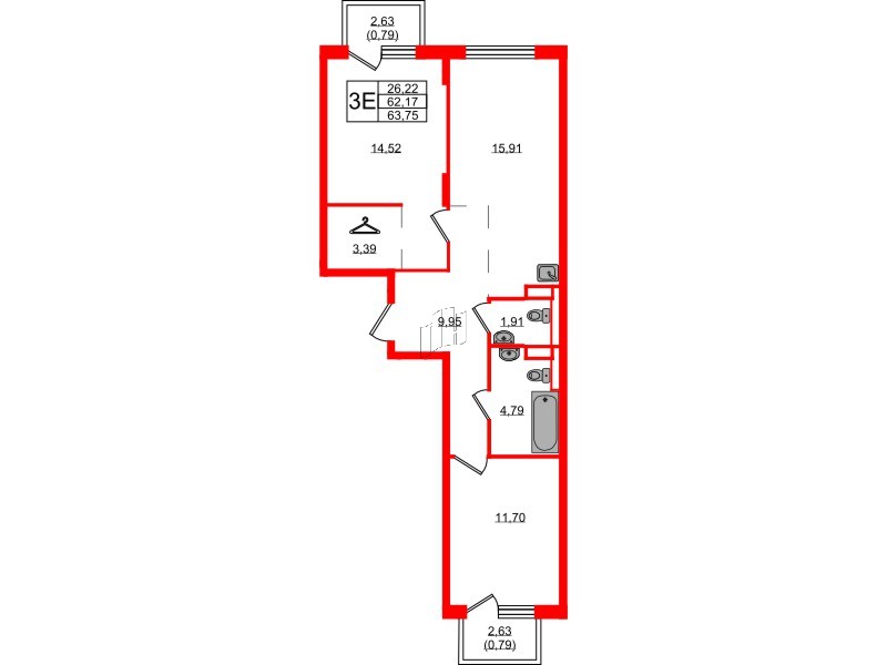Двухкомнатные квартиры (3 квартиры, 3 планировки)