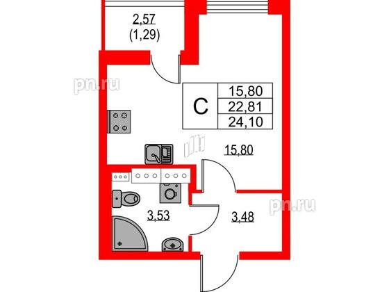 Однокомнатные квартиры (3 квартиры, 3 планировки)