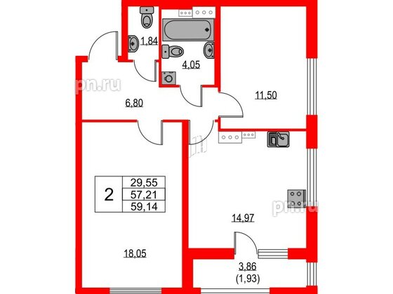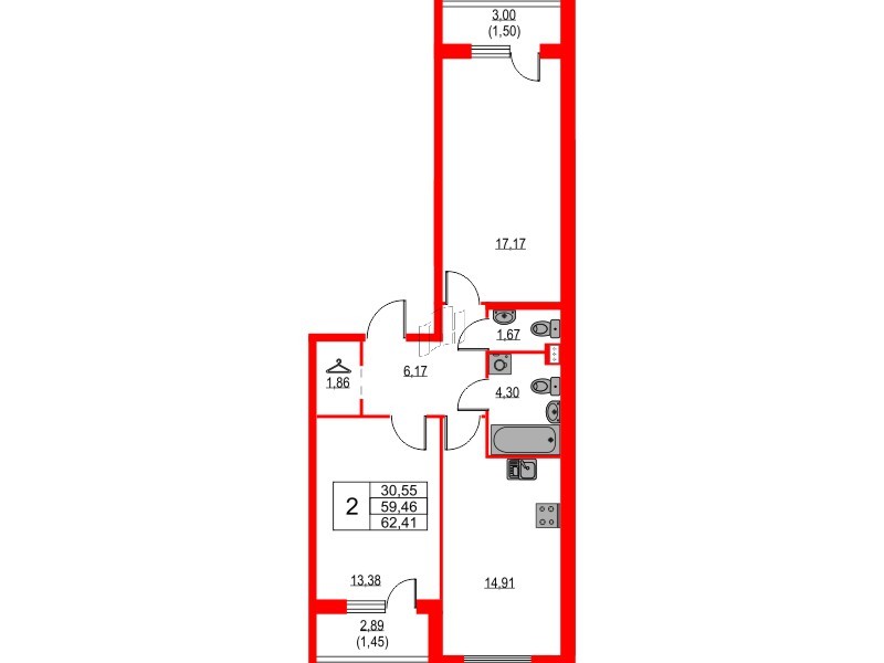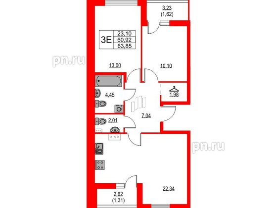 Двухкомнатные квартиры (3 квартиры, 3 планировки)