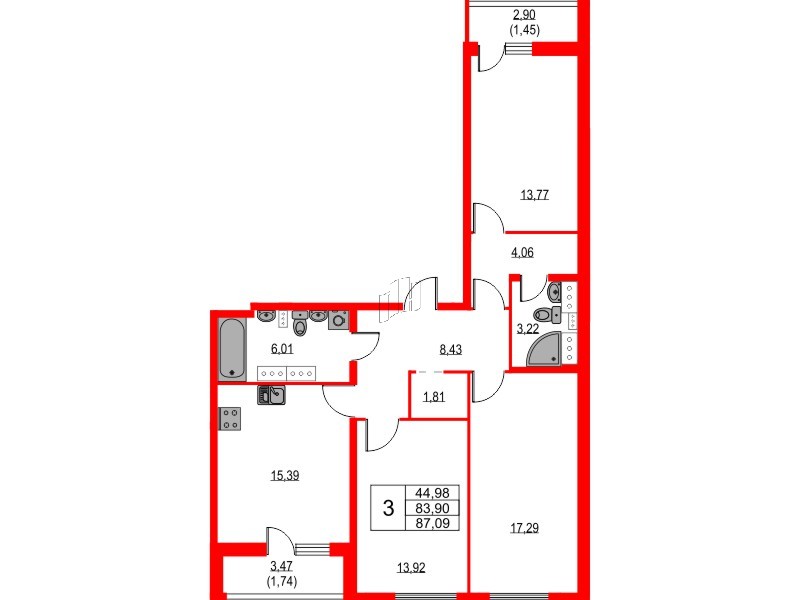 Трехкомнатные квартиры (3 квартиры, 3 планировки)