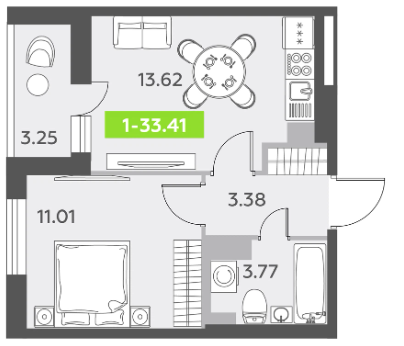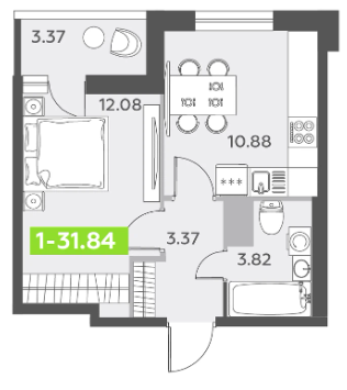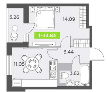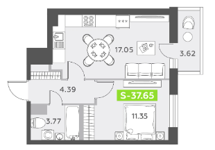 Однокомнатные квартиры (3 квартиры, 3 планировки)