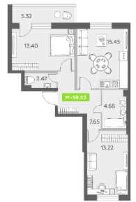 Трехкомнатные квартиры (1 квартира, 1 планировка)