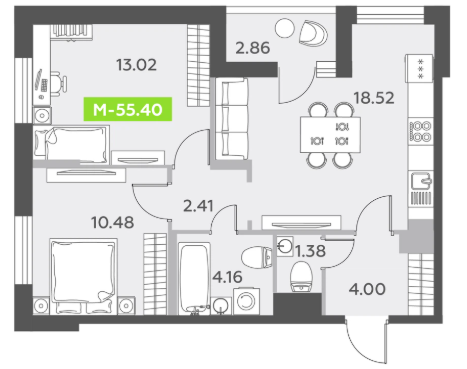 Четырехкомнатные квартиры (1 квартира, 1 планировка)