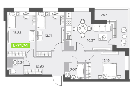 | 74.74 м2 | 55.02 | 4-8 этаж | 4 кв 2025 | 303 412 a/м2 | 22 677 012 – 22 880 380 руб |