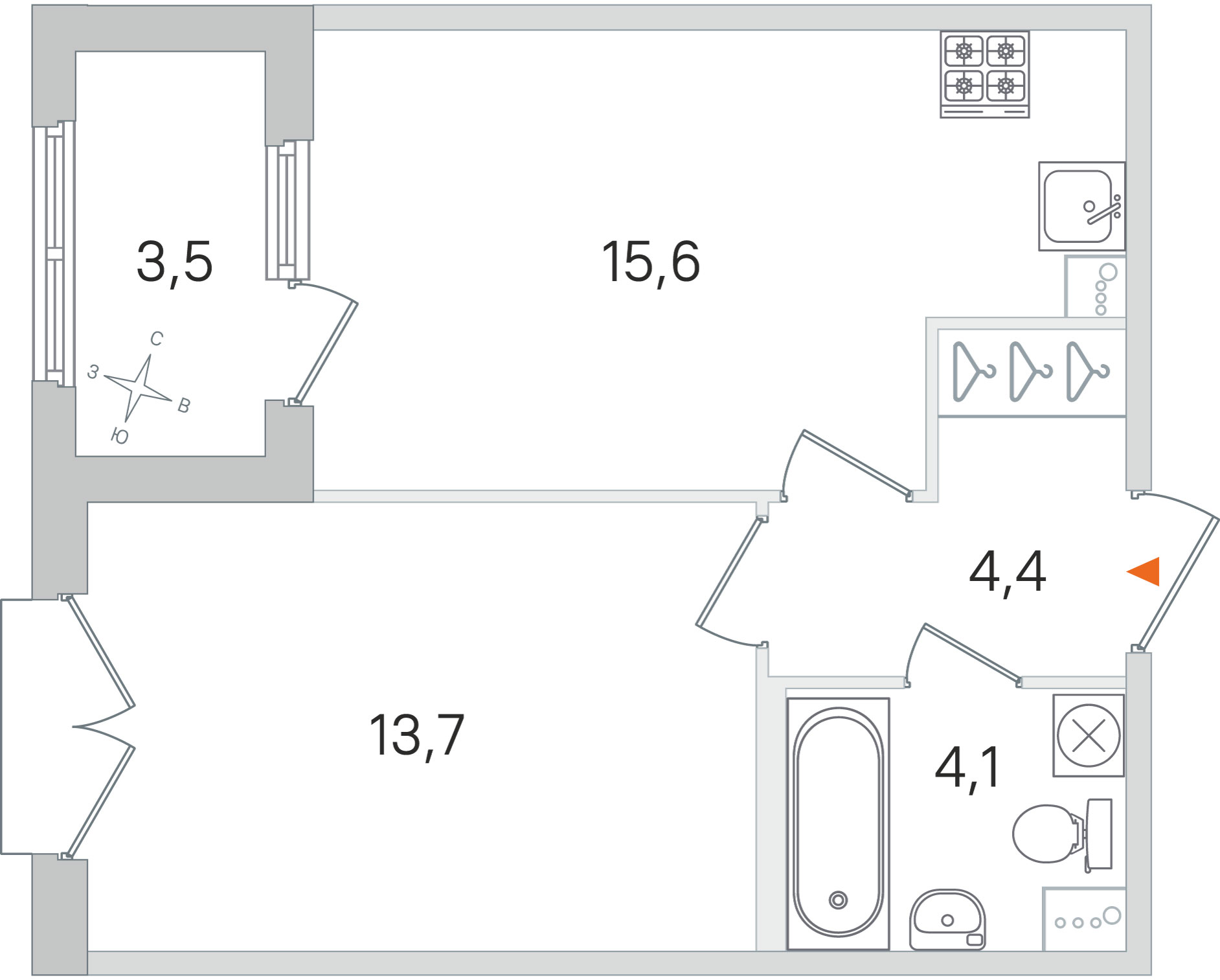 Однокомнатные квартиры (46 квартир, 35 планировок)