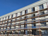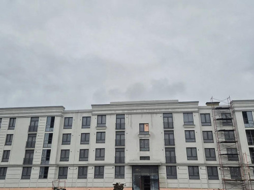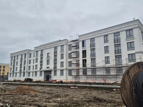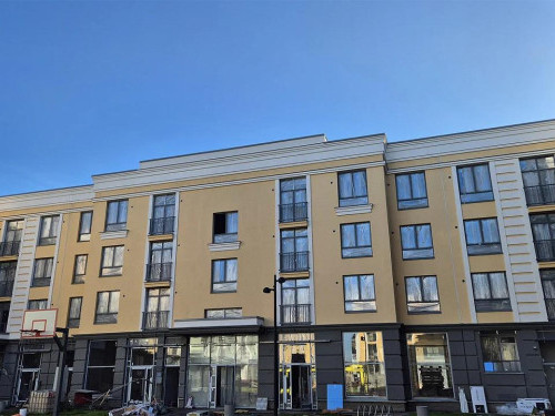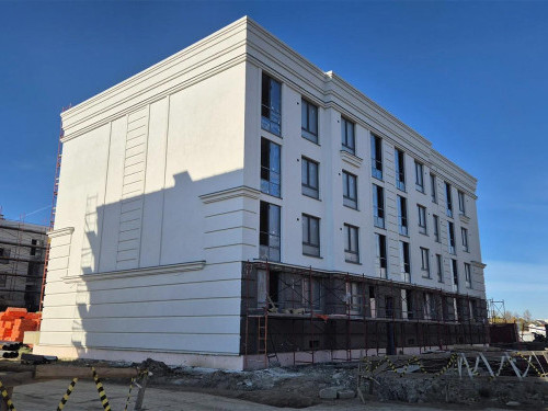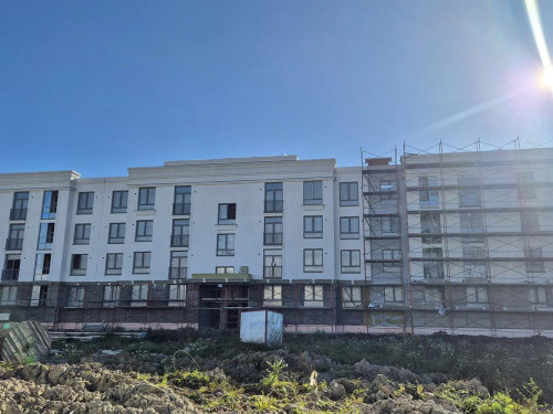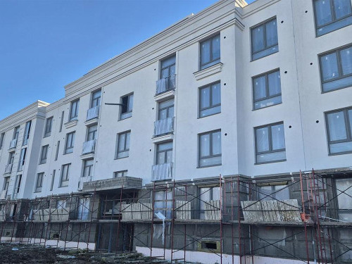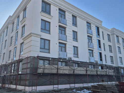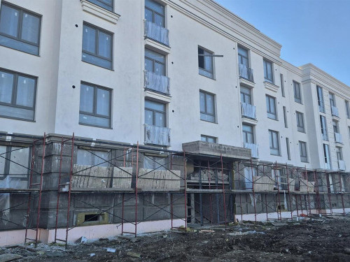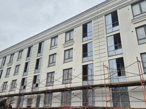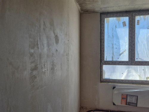 - Предчистовая отделка МОП и квартир: устройство откосов, шпаклевка стен (80%).