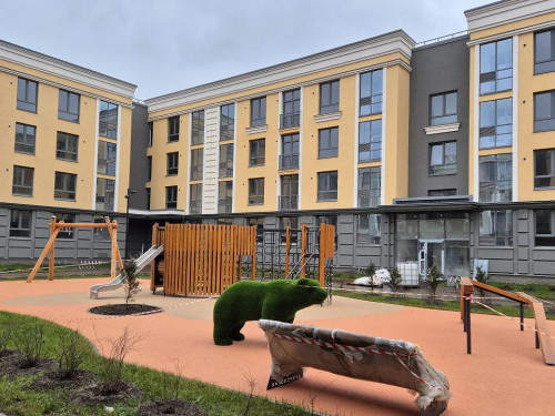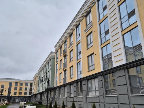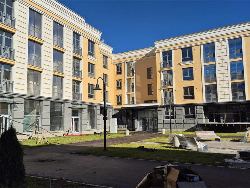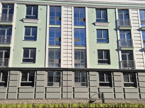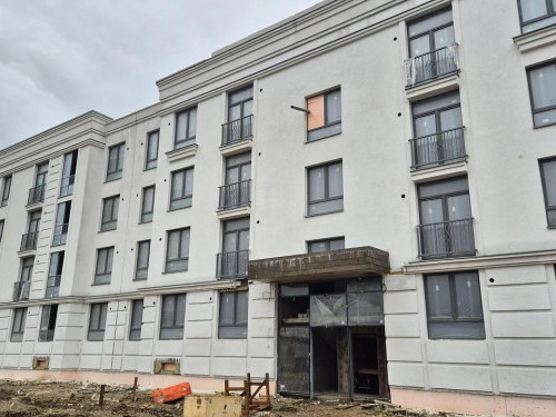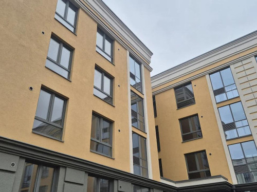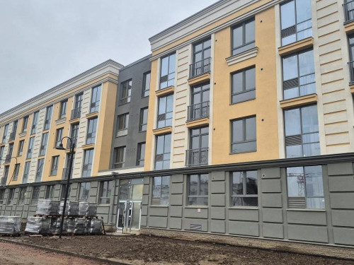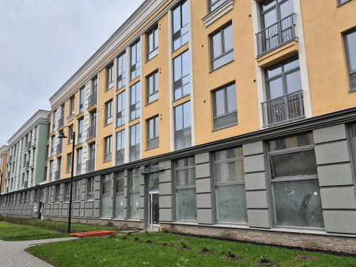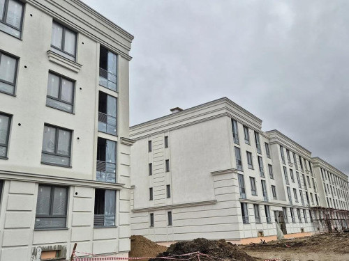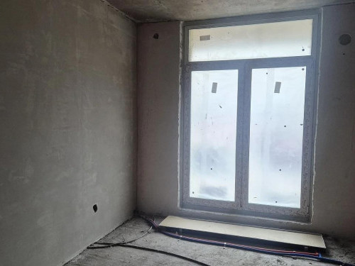 - Предчистовая отделка МОП и квартир: устройство откосов, шпаклевка стен (90%);