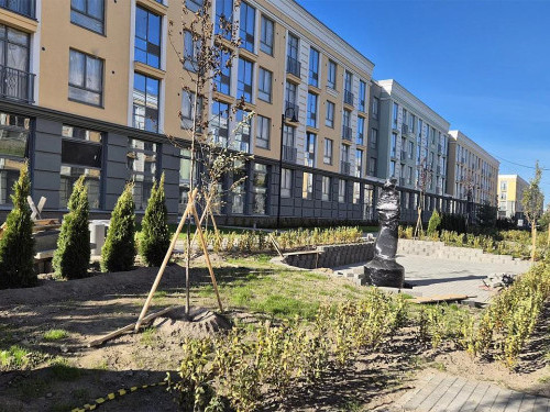 - Благоустройство территории двор (посадка растений, монтаж МАФ).