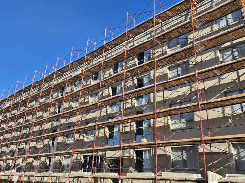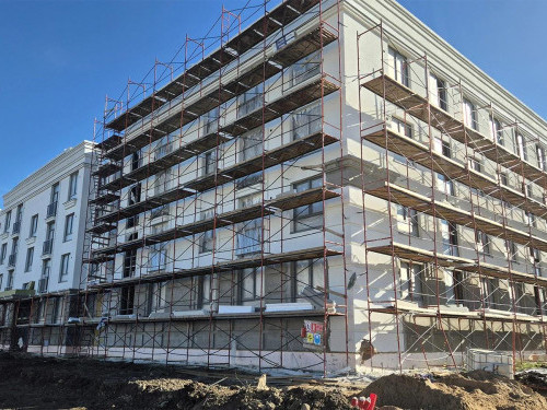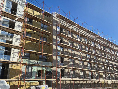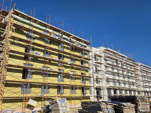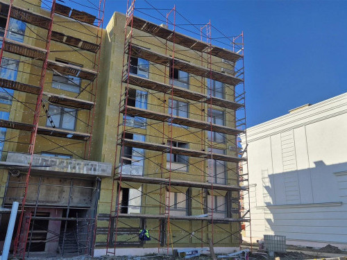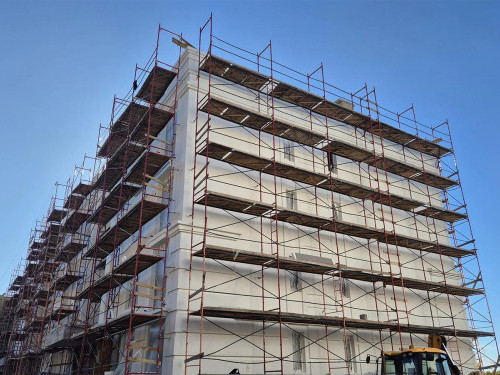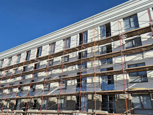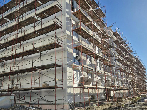 - Устройство фасадов (утепление - 95%, устройство декоративного слоя - 50%).
