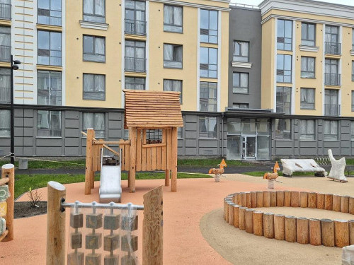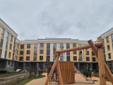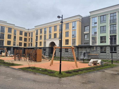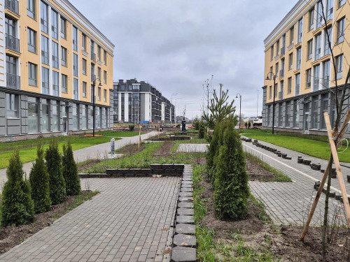 - Благоустройство территории: устройство бортового камня, устройство подстилающих слоев (песок, щебень), завоз плодородного грунта, монтаж МАФ, устройство набивного покрытия, устройство подпорных стенок, тротуарной плитки между корпусами 3, 4. Асфальтирование.
