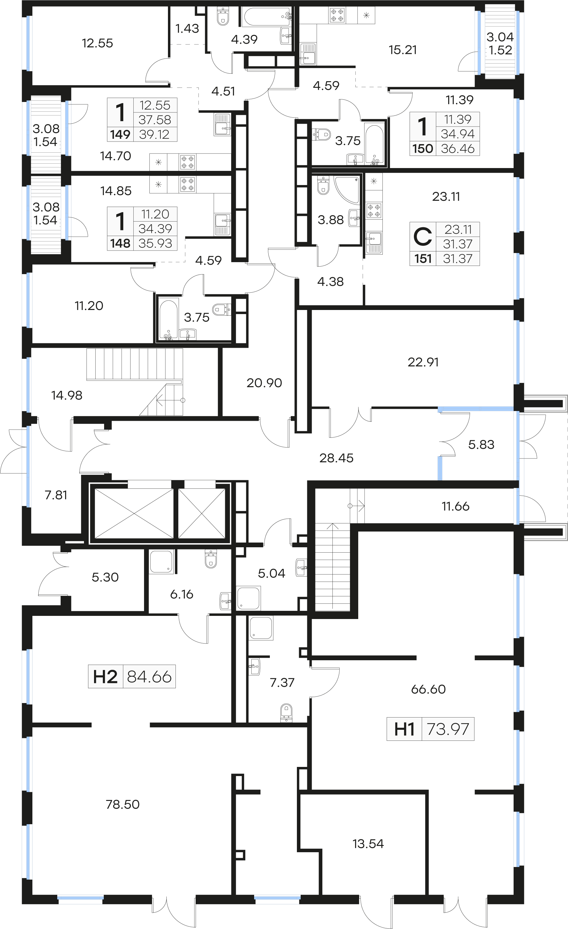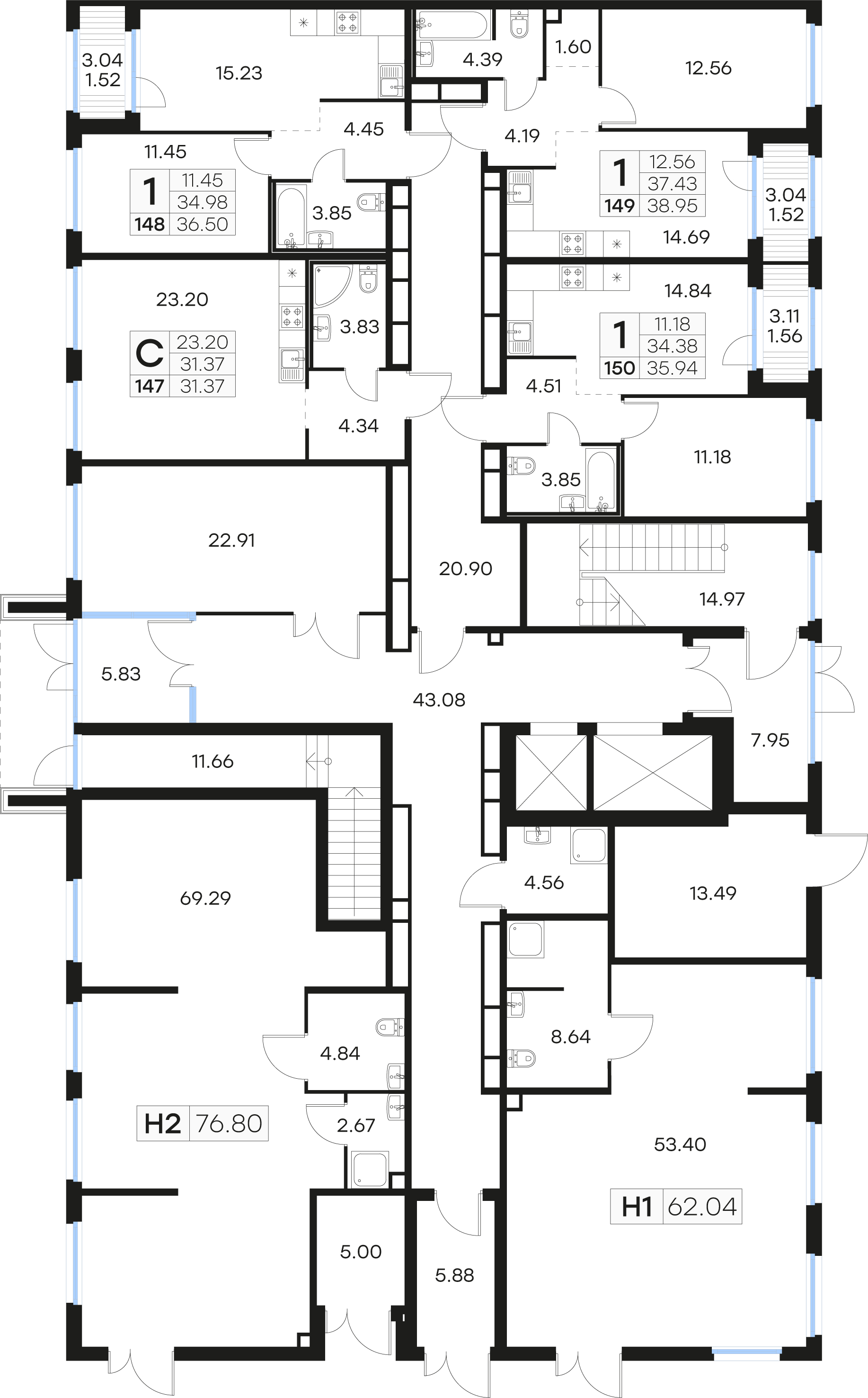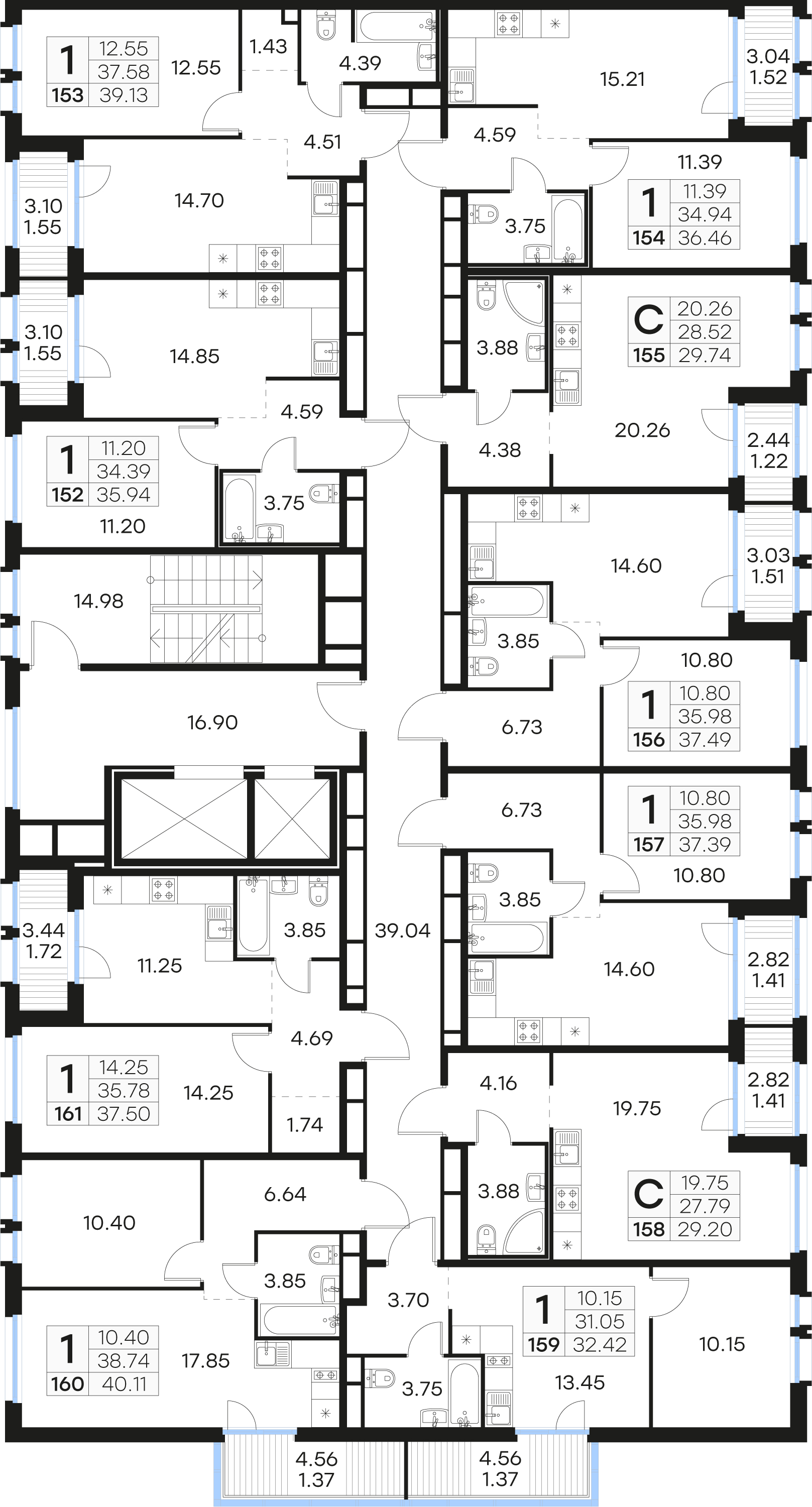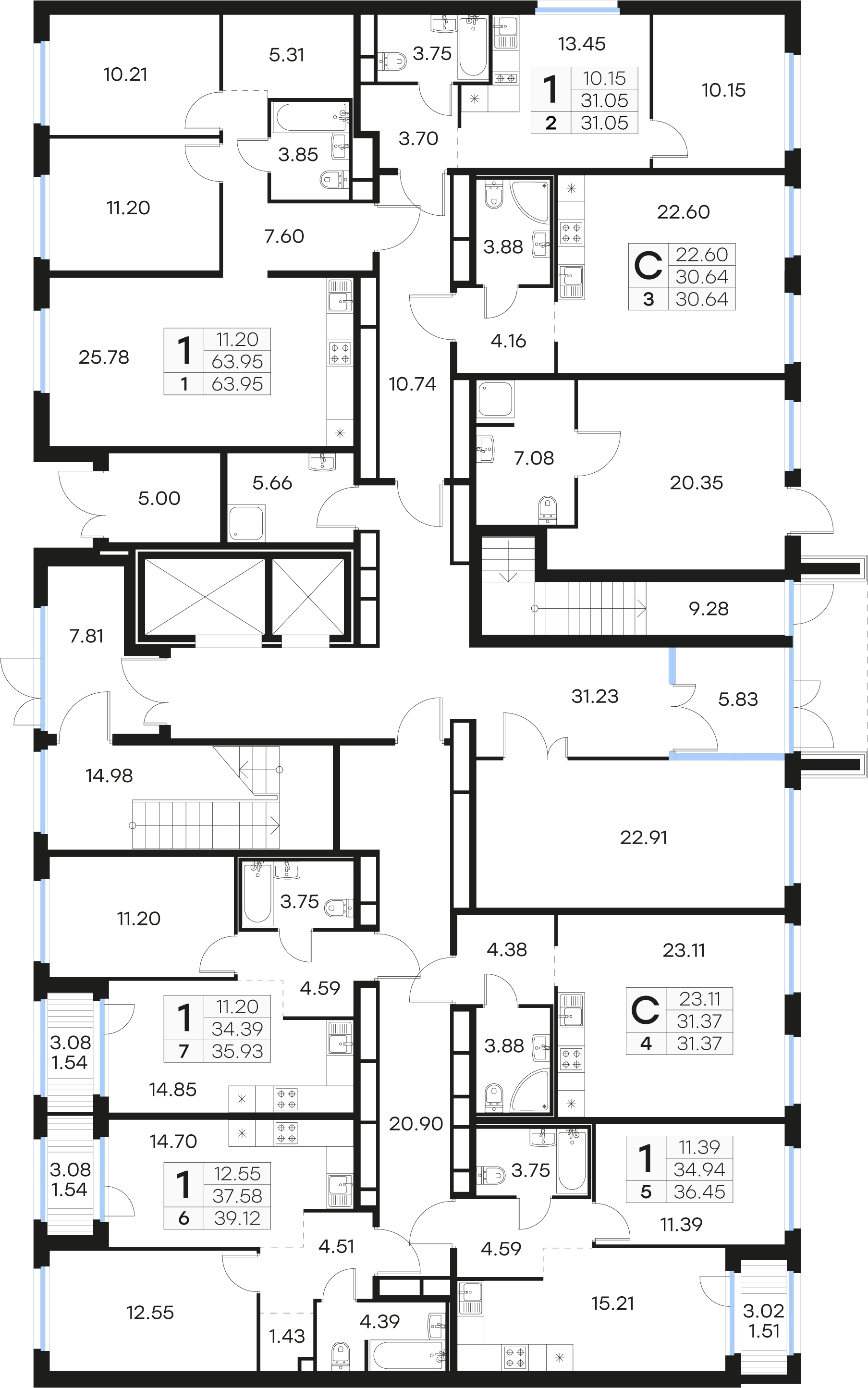 Трехкомнатные квартиры (4 квартиры, 2 планировки)