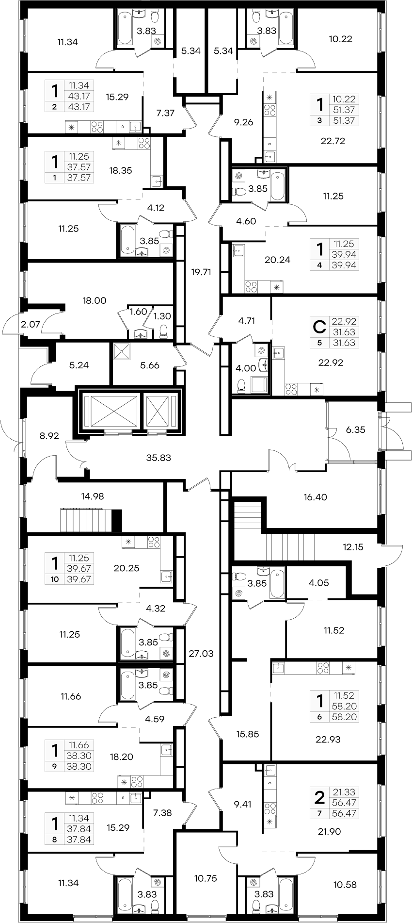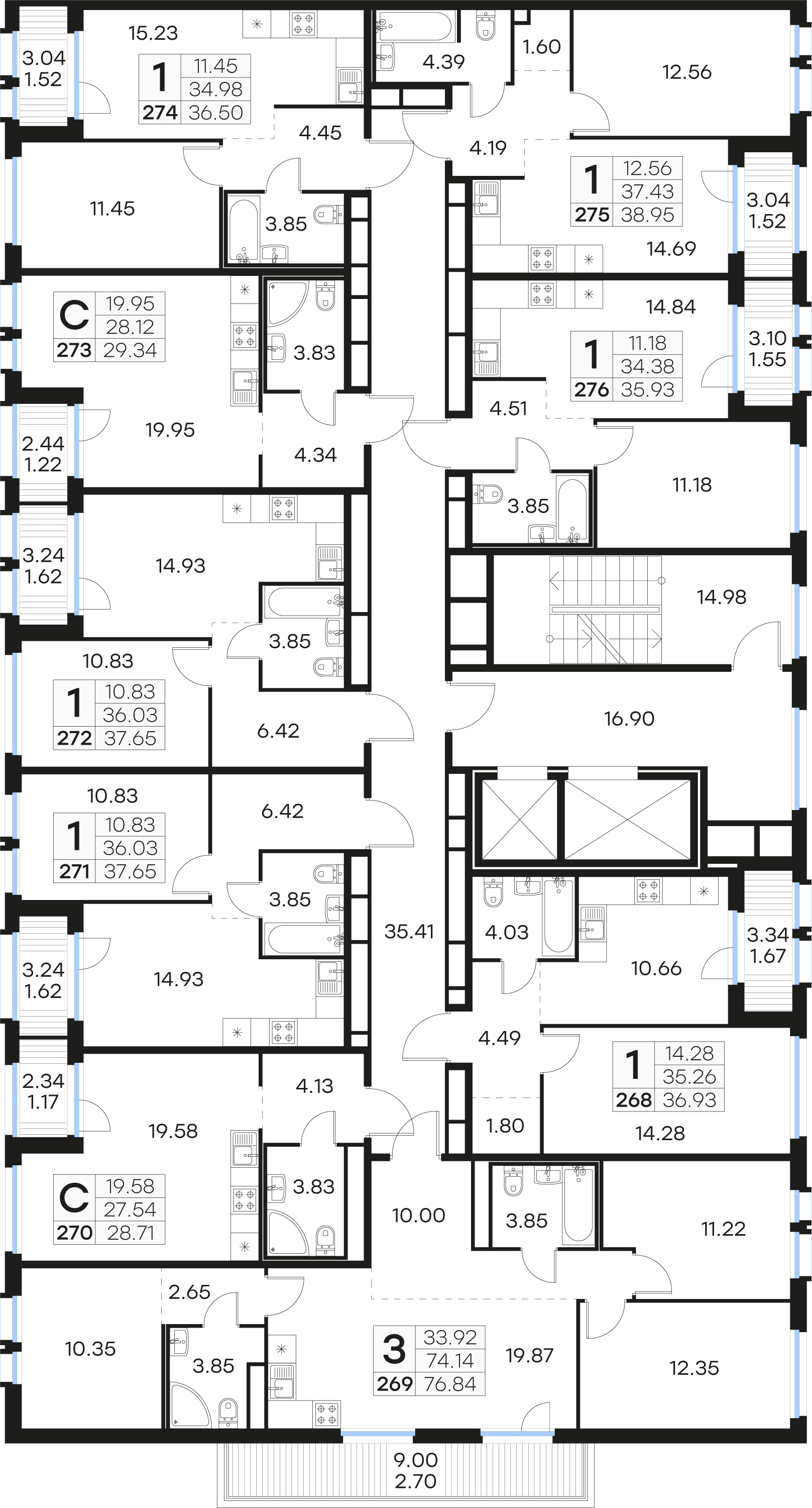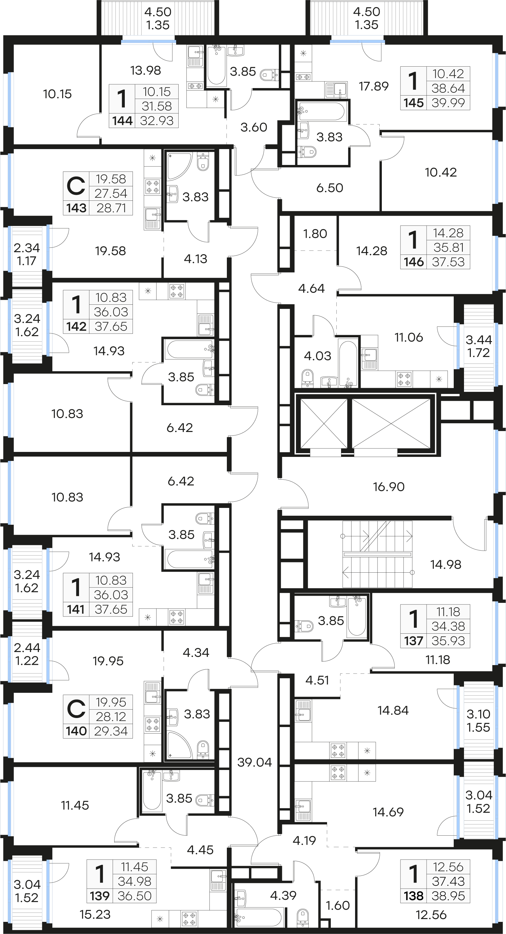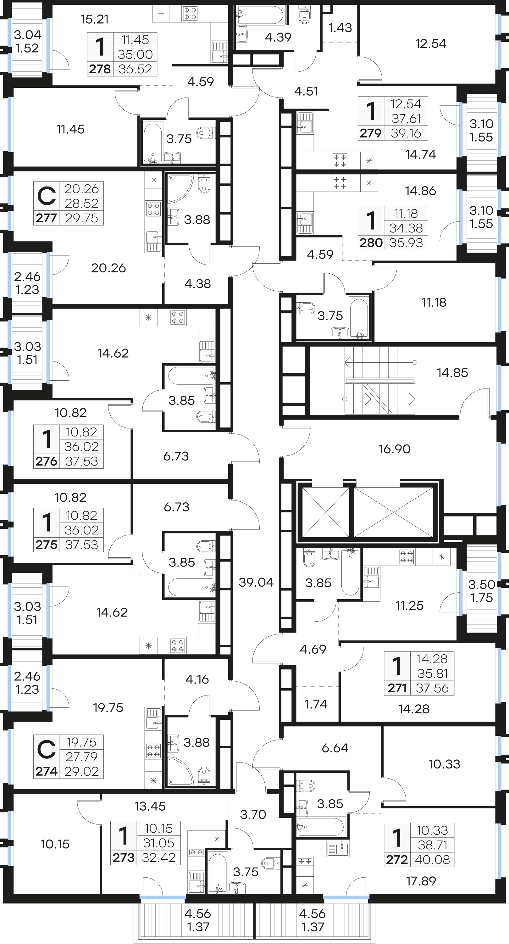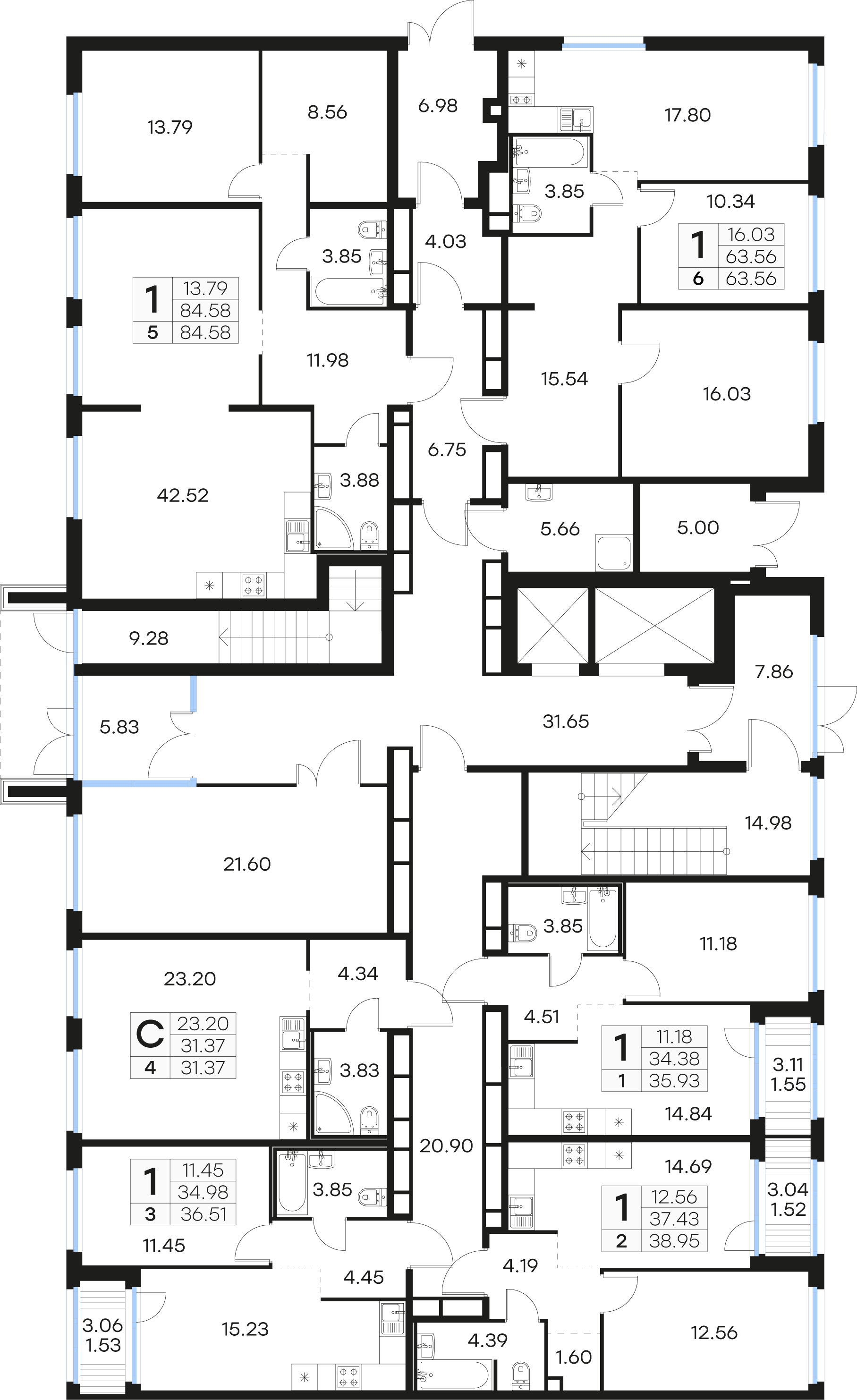 Трехкомнатные квартиры (4 квартиры, 2 планировки)