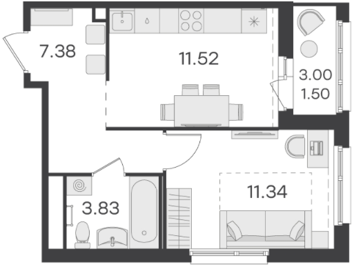 - от 7 516 031 a за студию ЖК "Кронфорт. Центральный"