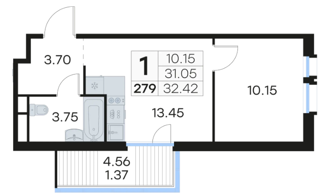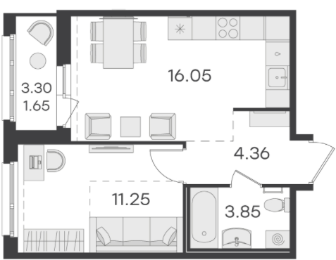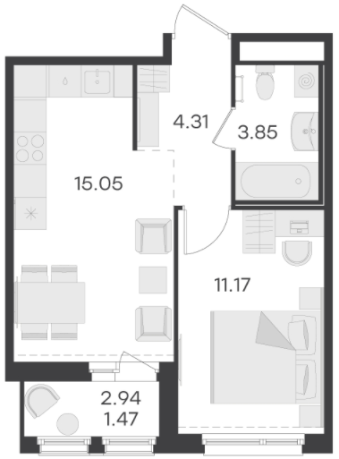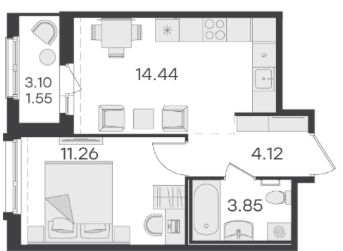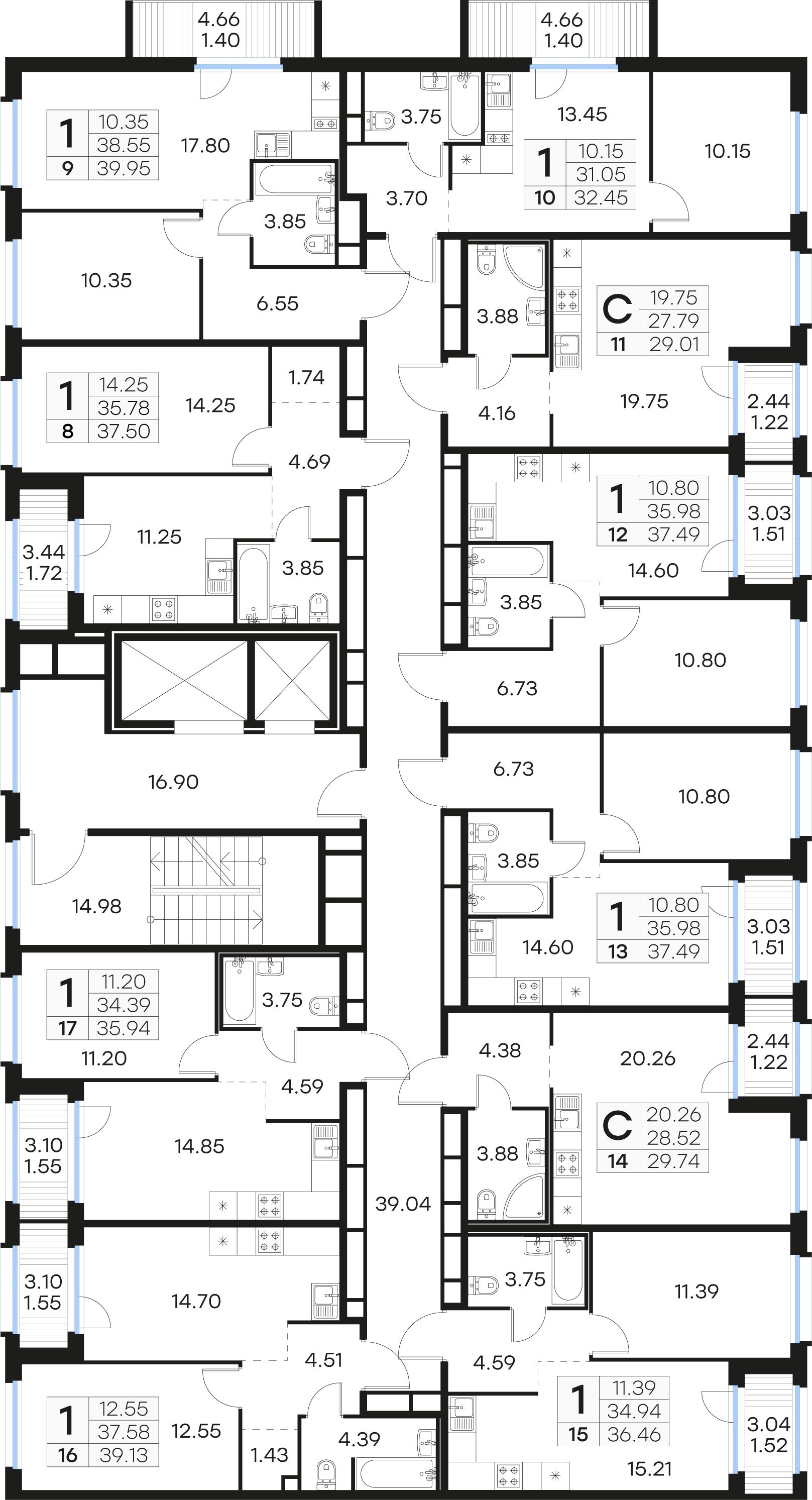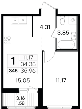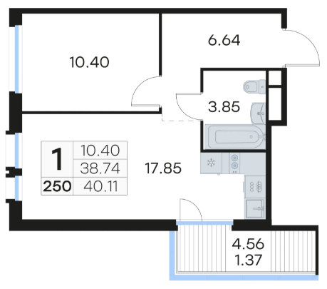 Однокомнатные квартиры (95 квартир, 44 планировки)