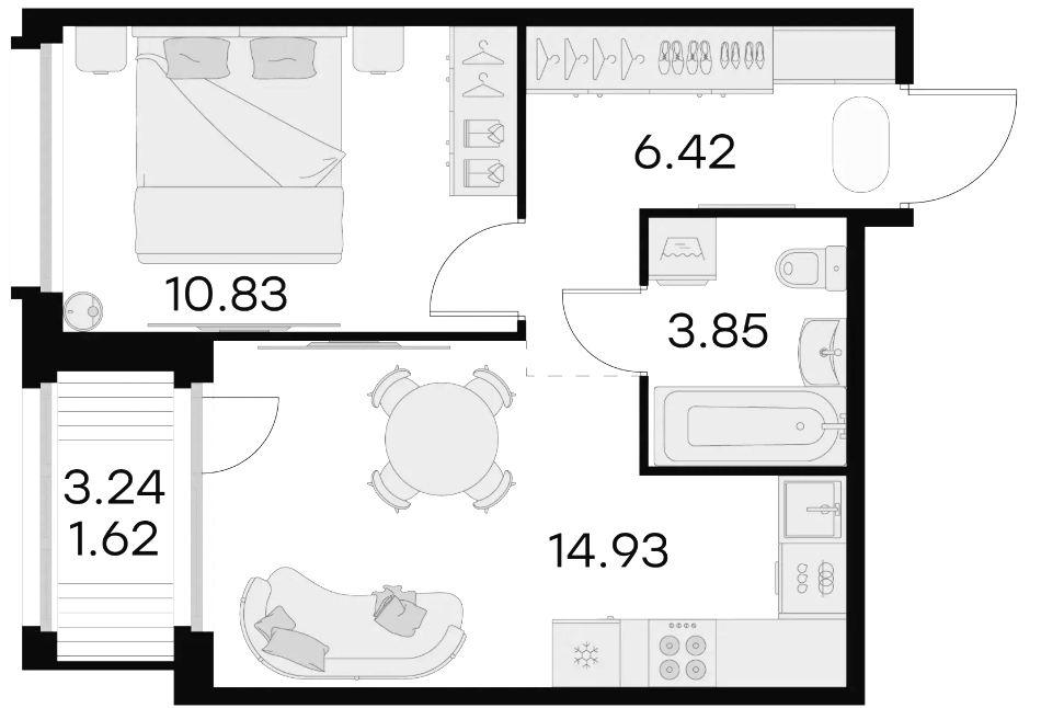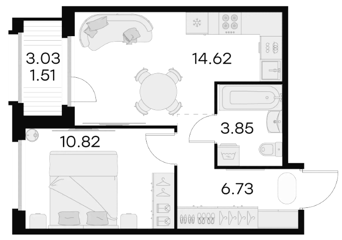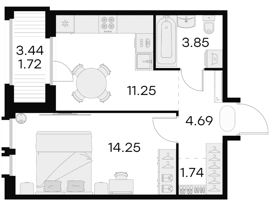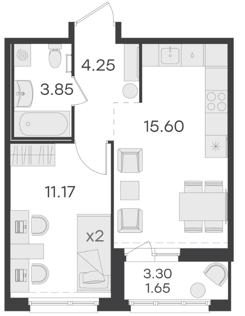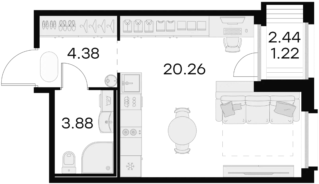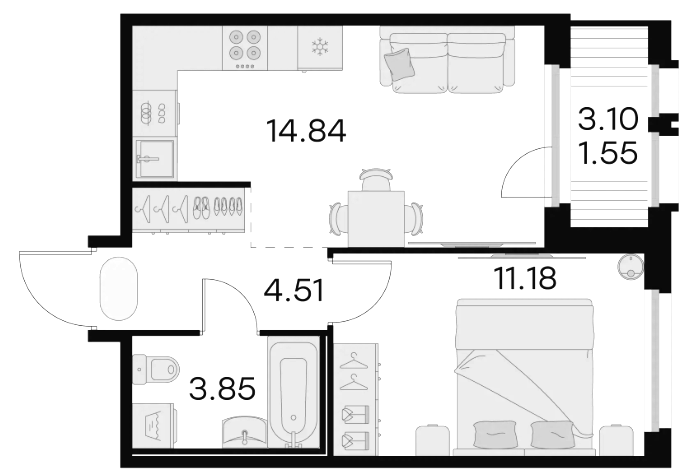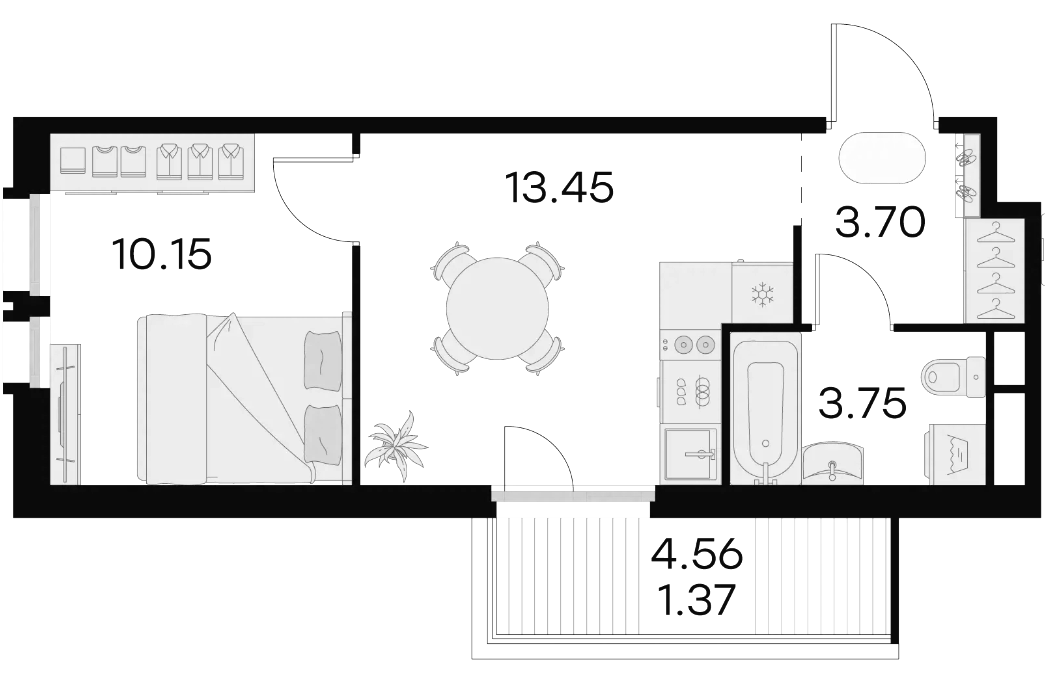 Однокомнатные квартиры (122 квартиры, 37 планировок)