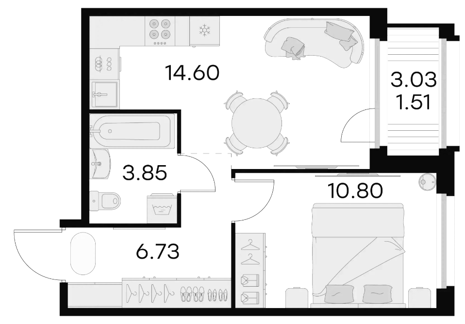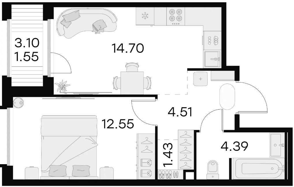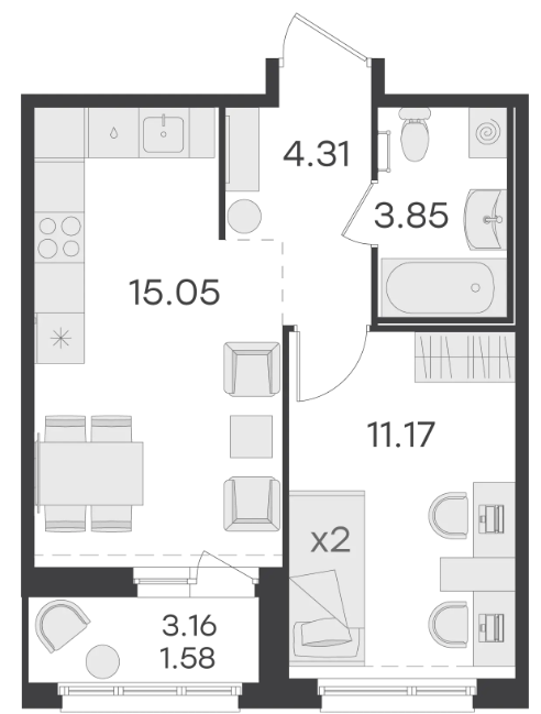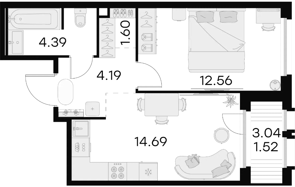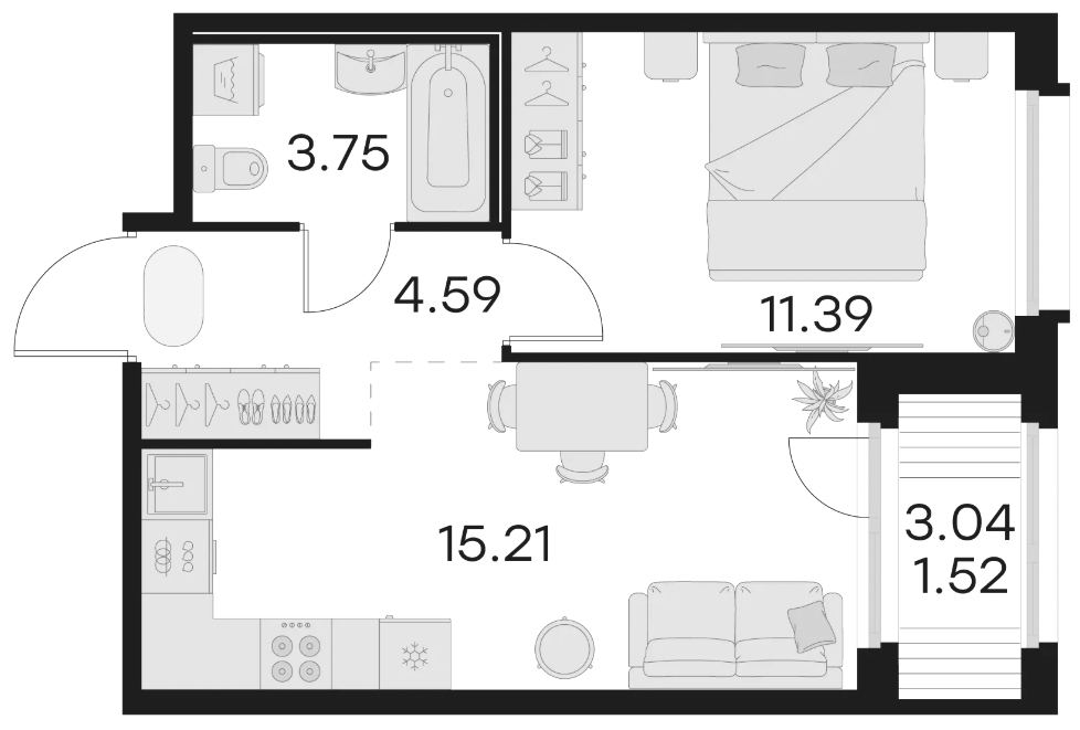 Все квартиры, за исключением расположенных на первом этаже, идут с балконом. Застройщик передает жилье с предчистовой отделкой или с готовой отделкой в двух вариантах - темном и светлом. Пол в лоджиях будет покрыт плиткой, на лоджию будет проведено освещение и электричество. Планировки идут как стандартного формата, так и евро-формата, есть студии, одно-, двух- и трехкомнатные квартиры, но не во всех корпусах будут трехкомнатные квартиры. Самая маленькая студия будет площадью в 23 кв.м.