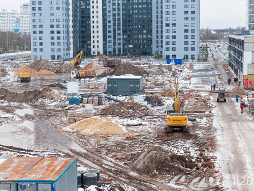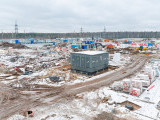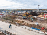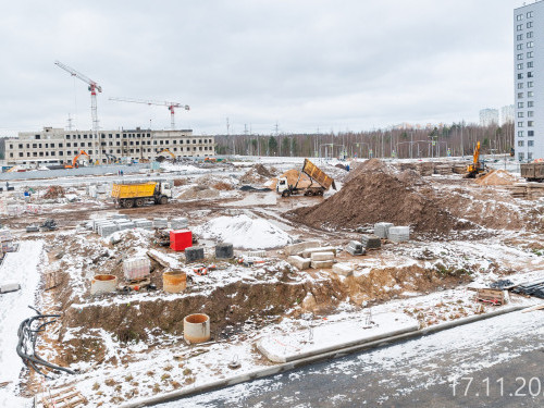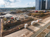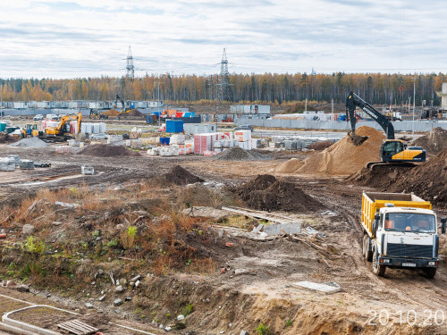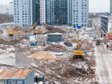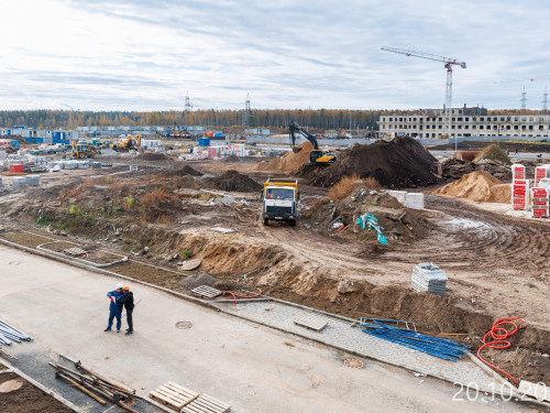 - Выполняются работы по водопонижению и откопке котлована, начали этап устройства фундамента для установки башенных кранов.
