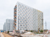 - Здесь в первой очереди мы завершили работы по устройству стен и перекрытий в районе 7-8 этажей на разных секциях. На уровне 2-4 этажей выполняем каменную кладку, прокладываем стояки вентиляции.