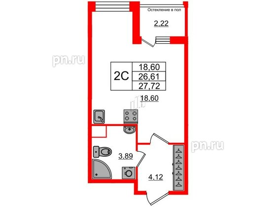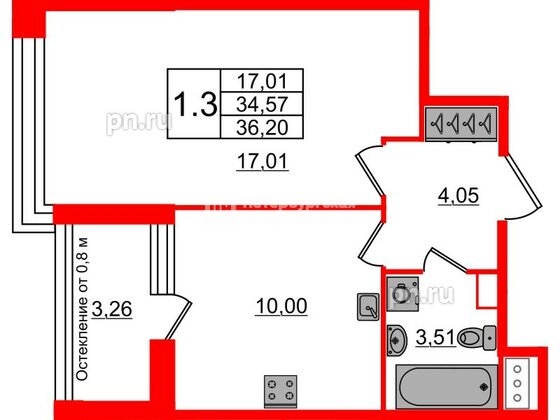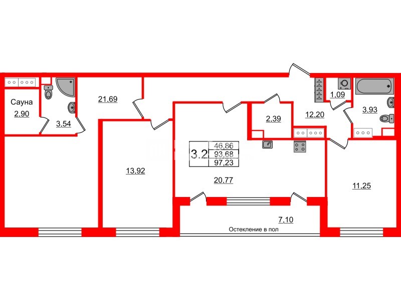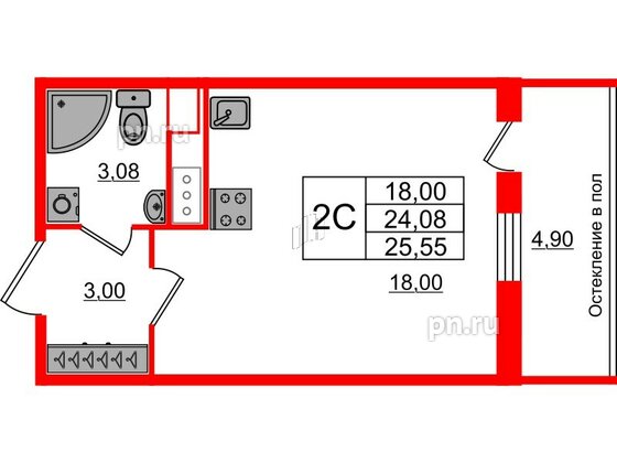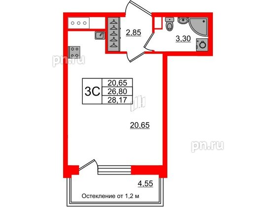 На последних этажах квартиры потолки до 3 метров, панорамное остекление выполнят при выходе из комнаты на балкон или лоджию.