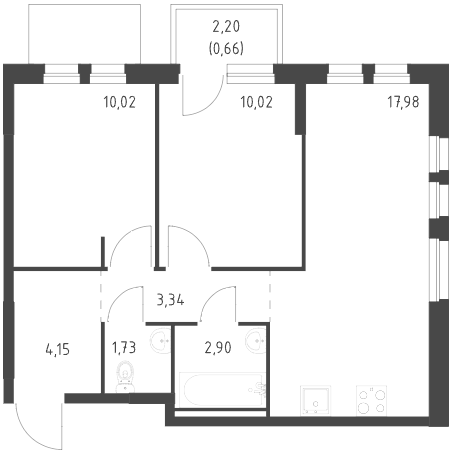 Двухкомнатные квартиры (9 квартир, 9 планировок)