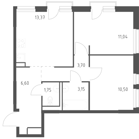 Трехкомнатные квартиры (2 квартиры, 2 планировки)