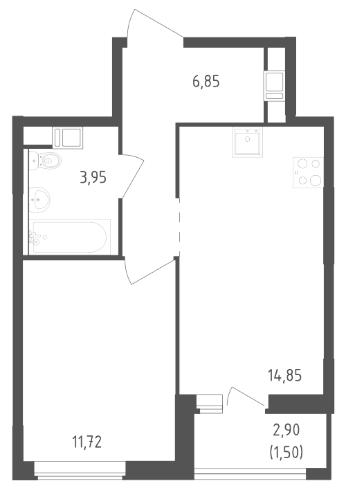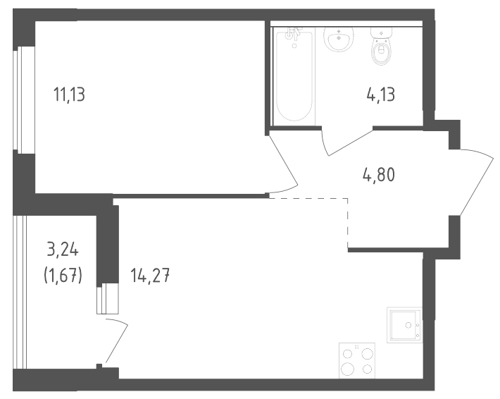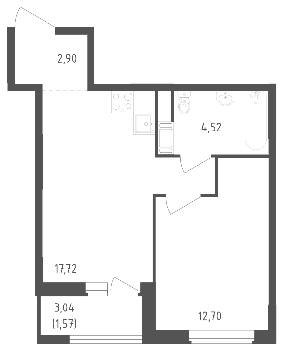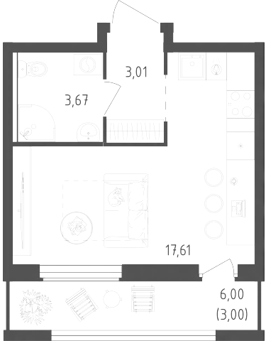 Однокомнатные квартиры (6 квартир, 6 планировок)