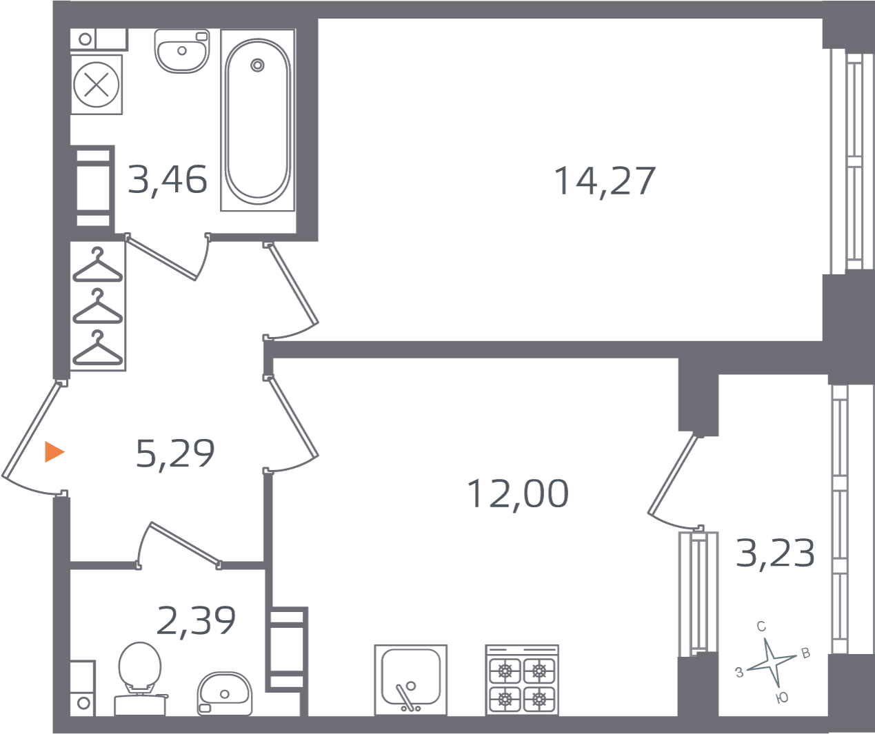| Фото | S общ | S жил | S кухн | Этаж | Сдача | Корпус | Цена за м2 | Стоимость |