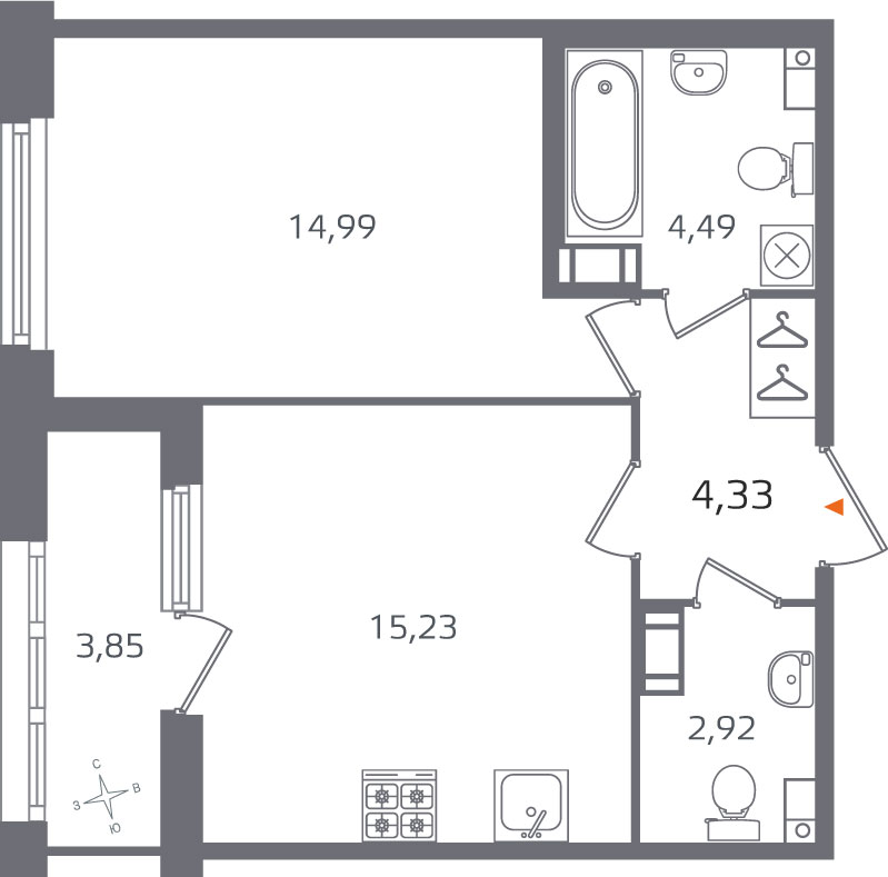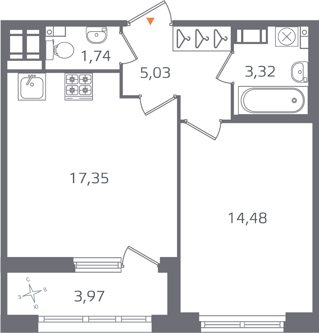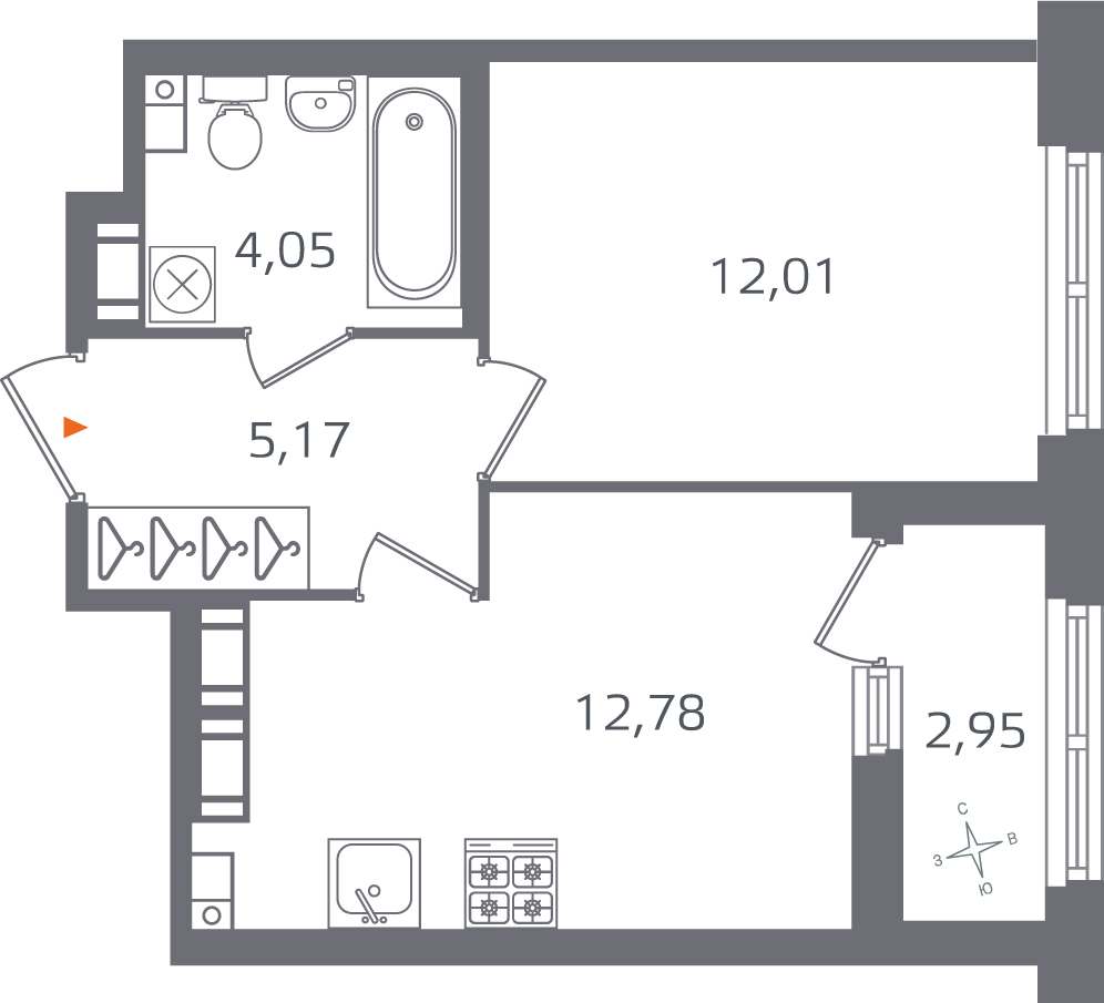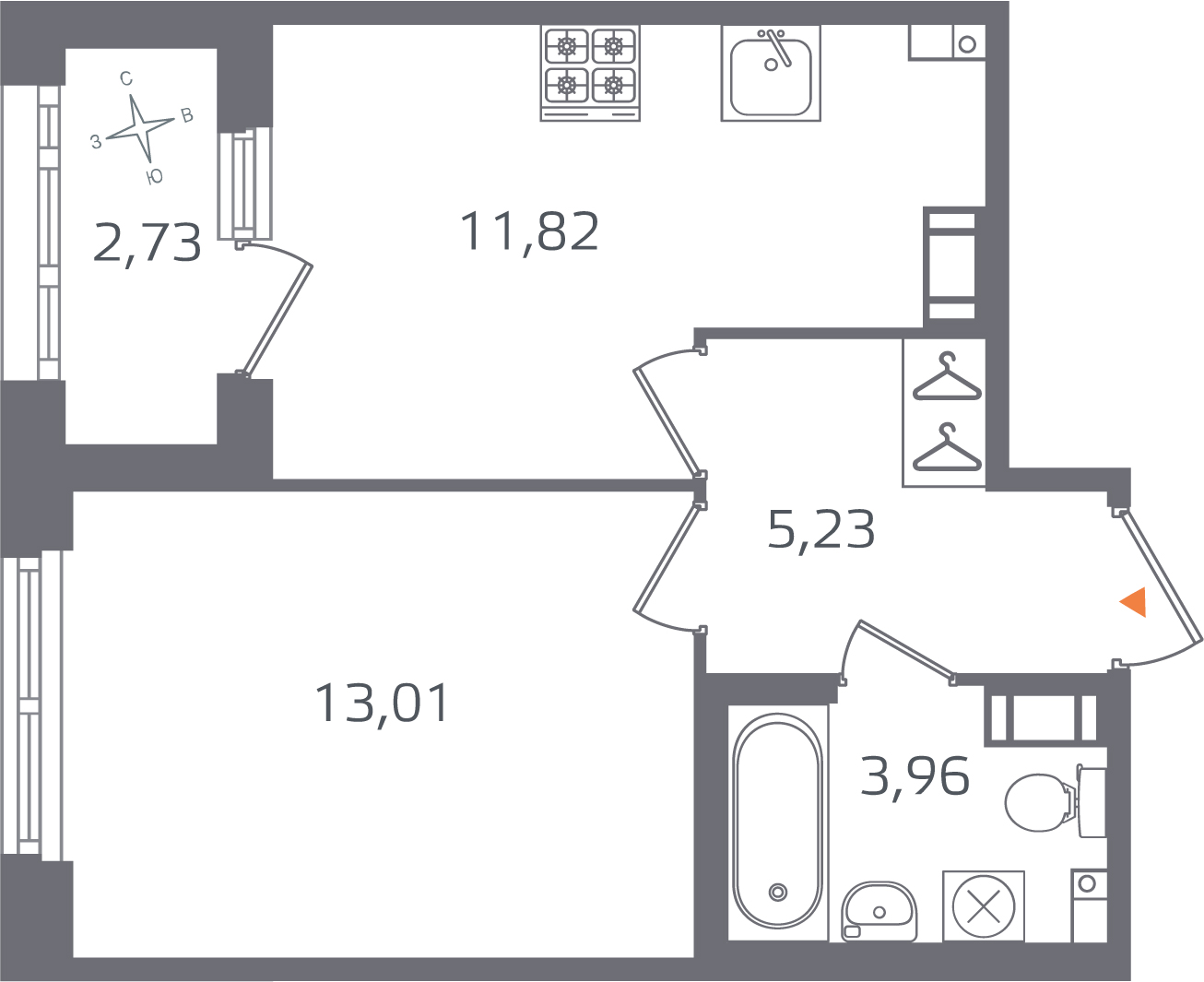 Однокомнатные квартиры (51 квартира, 16 планировок)