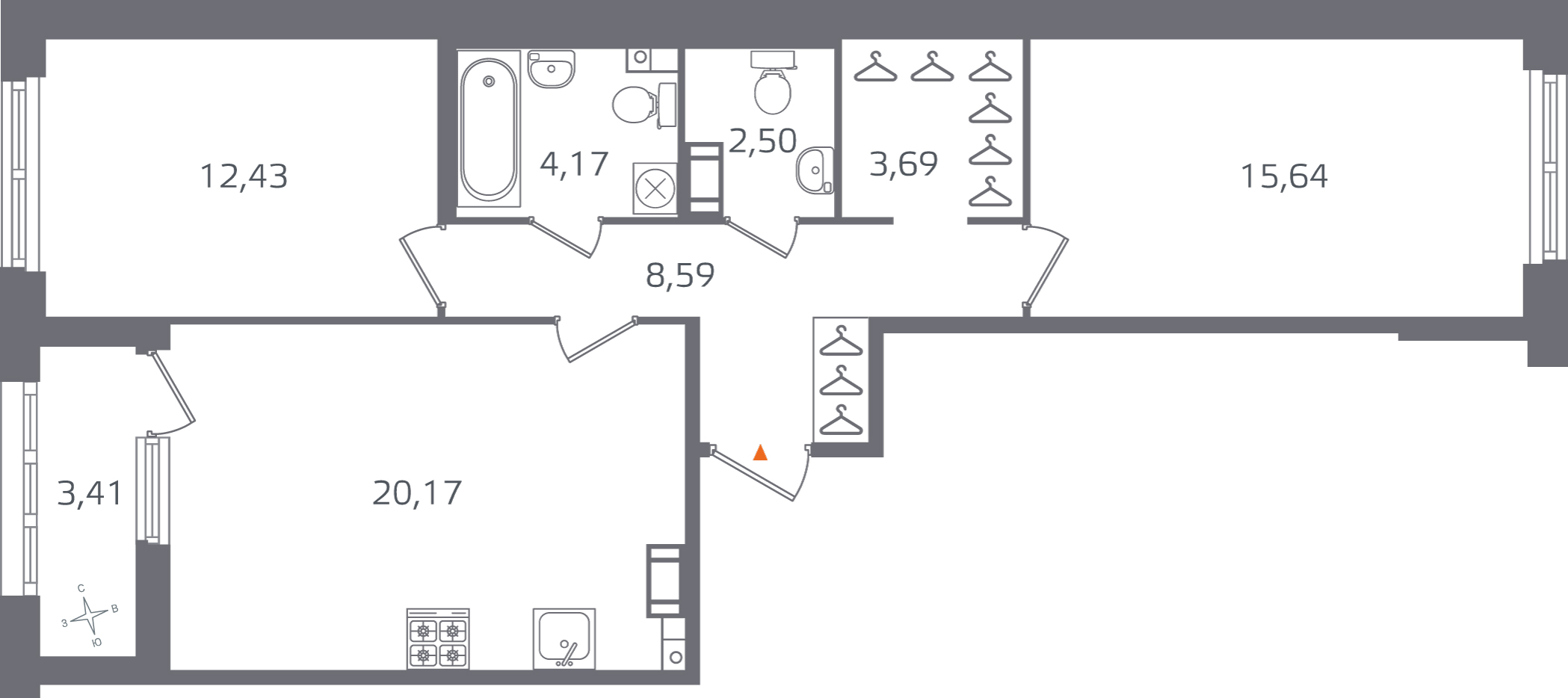 Трехкомнатные квартиры (16 квартир, 9 планировок)