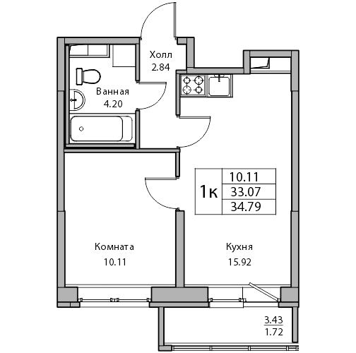 Однокомнатные квартиры (14 квартир, 14 планировок)