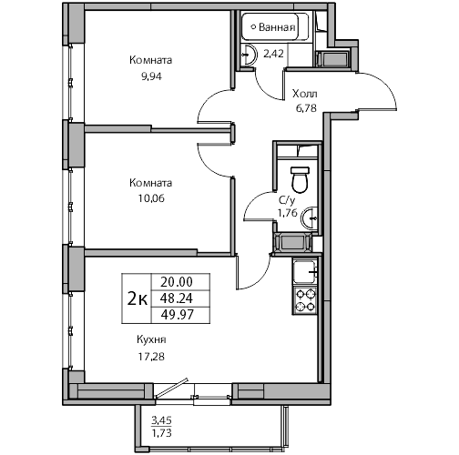 | 49.3 м2 | 20 | 17.28 | 22 этаж | 1 кв 2026 | 4 корпус 4 корпус | 260 910 a/м2 | 12 862 863 руб |