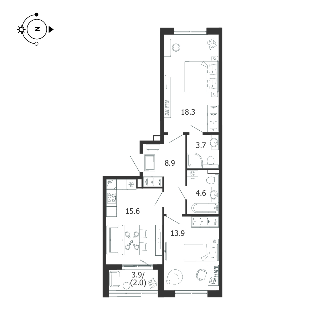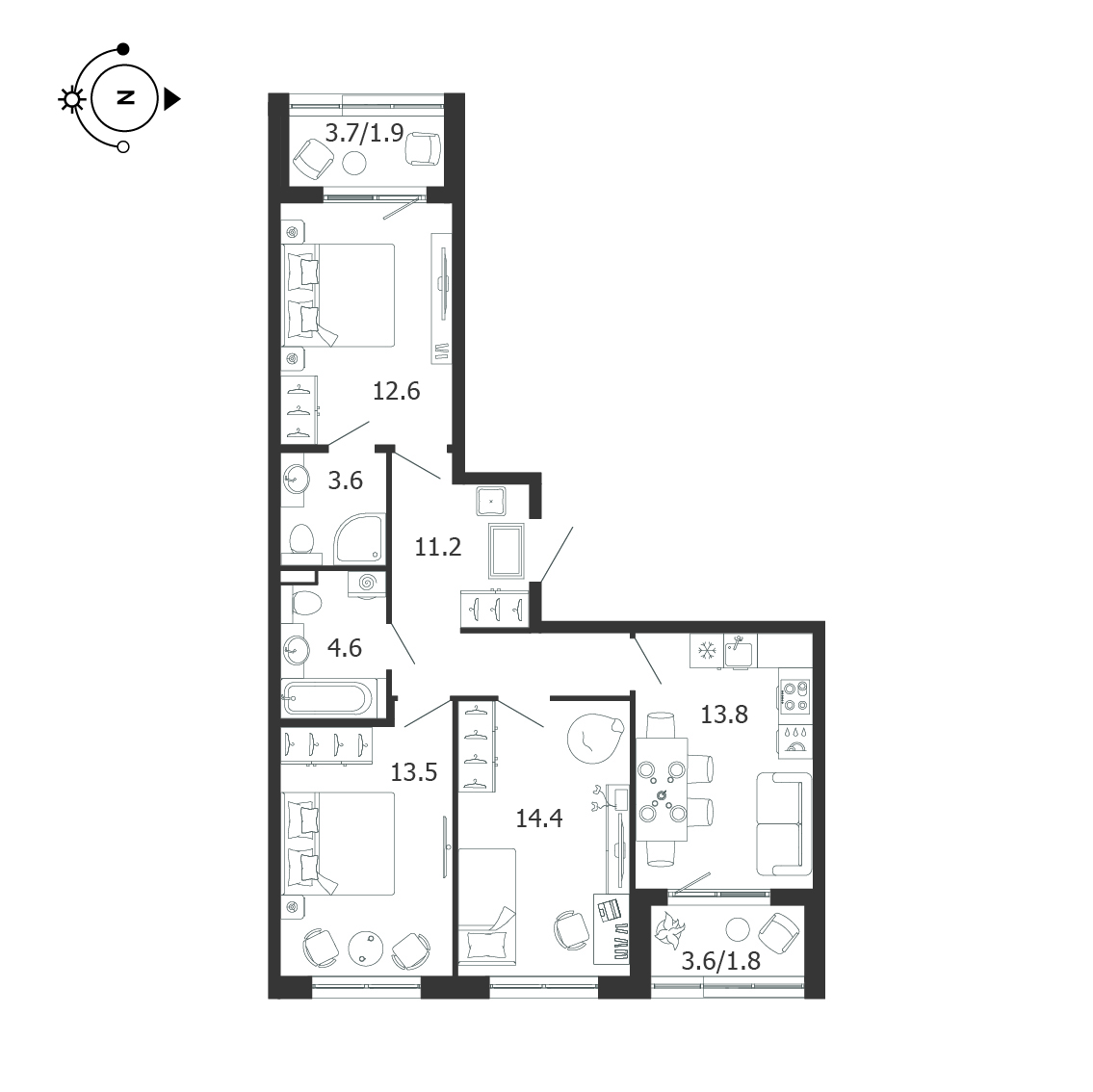 Трехкомнатные квартиры (4 квартиры, 4 планировки)