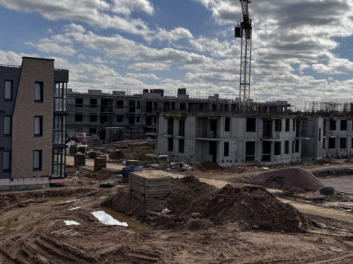 - Продолжается прокладка инженерных коммуникаций, ведутся фасадные работы, а также начат монтаж окон.