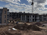 - Продолжается прокладка инженерных коммуникаций, ведутся фасадные работы, а также работы по монтажу окон.
