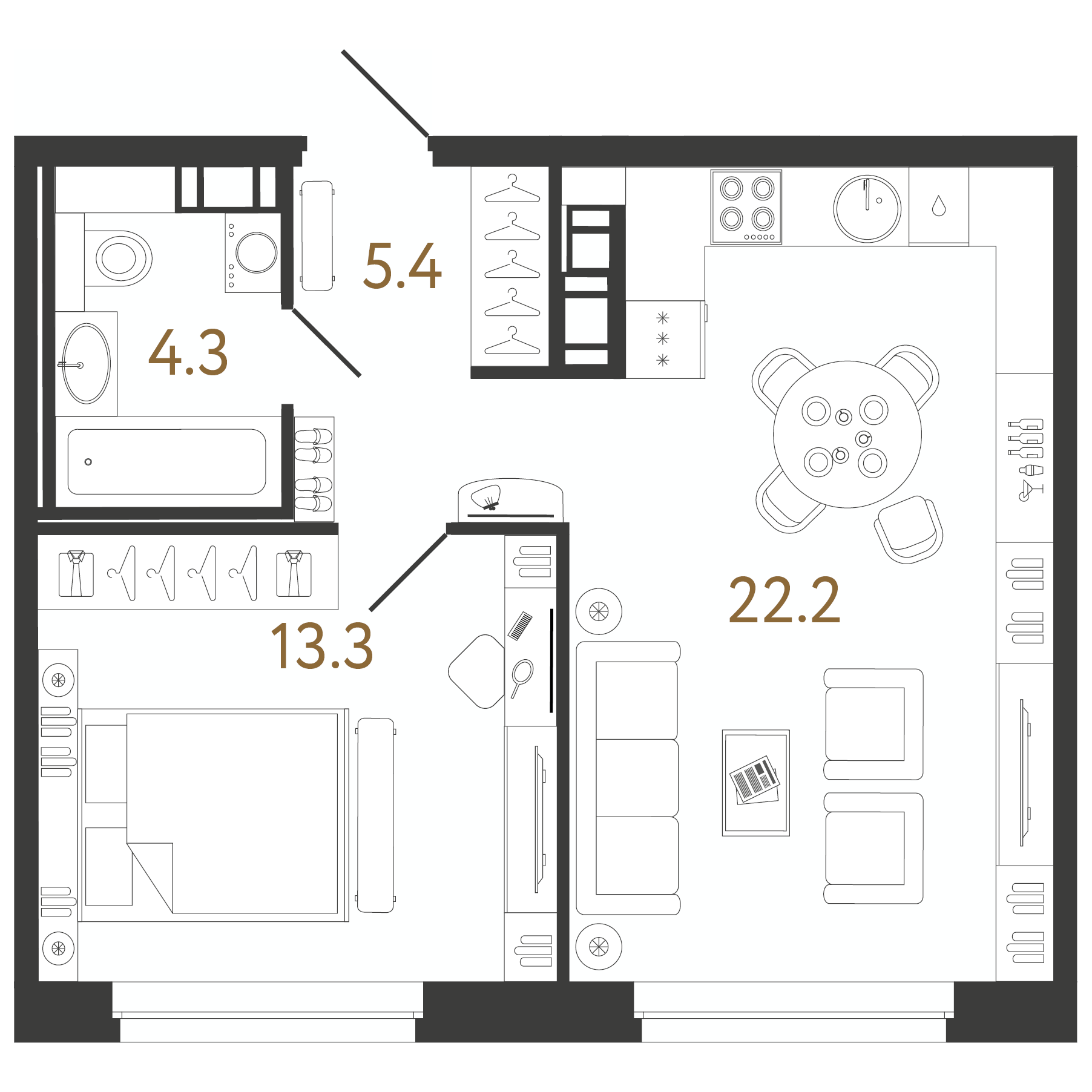 Однокомнатные квартиры (5 квартир, 4 планировки)