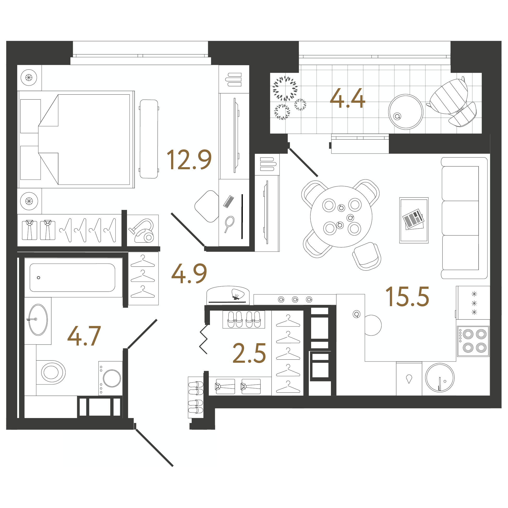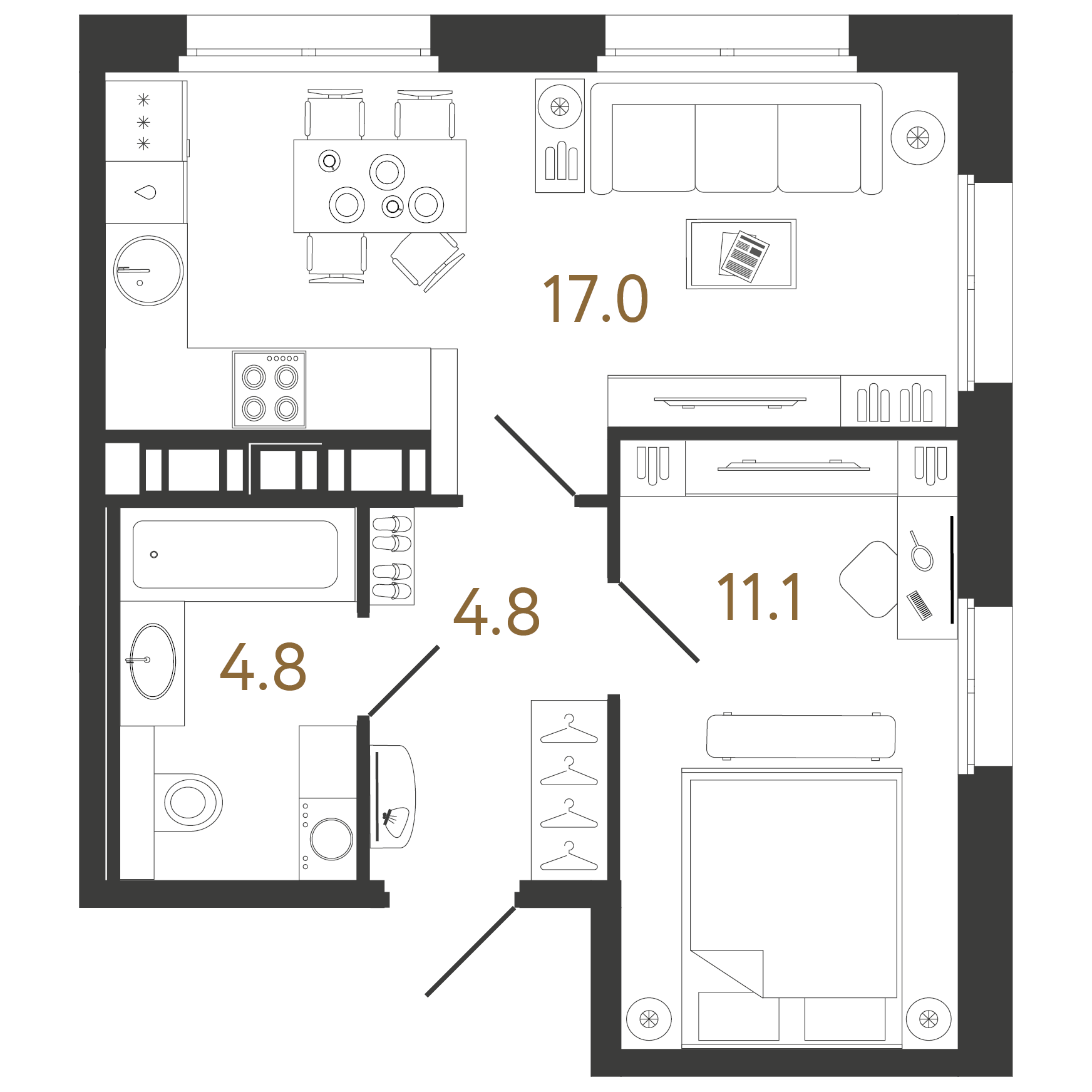 Однокомнатные квартиры (10 квартир, 6 планировок)