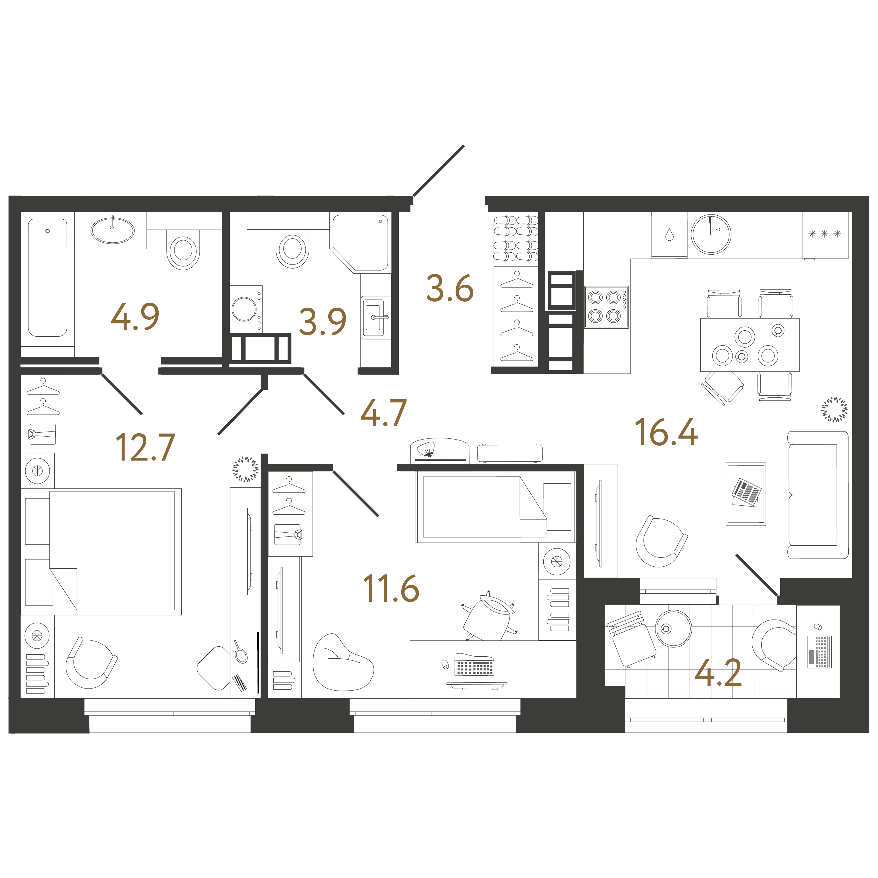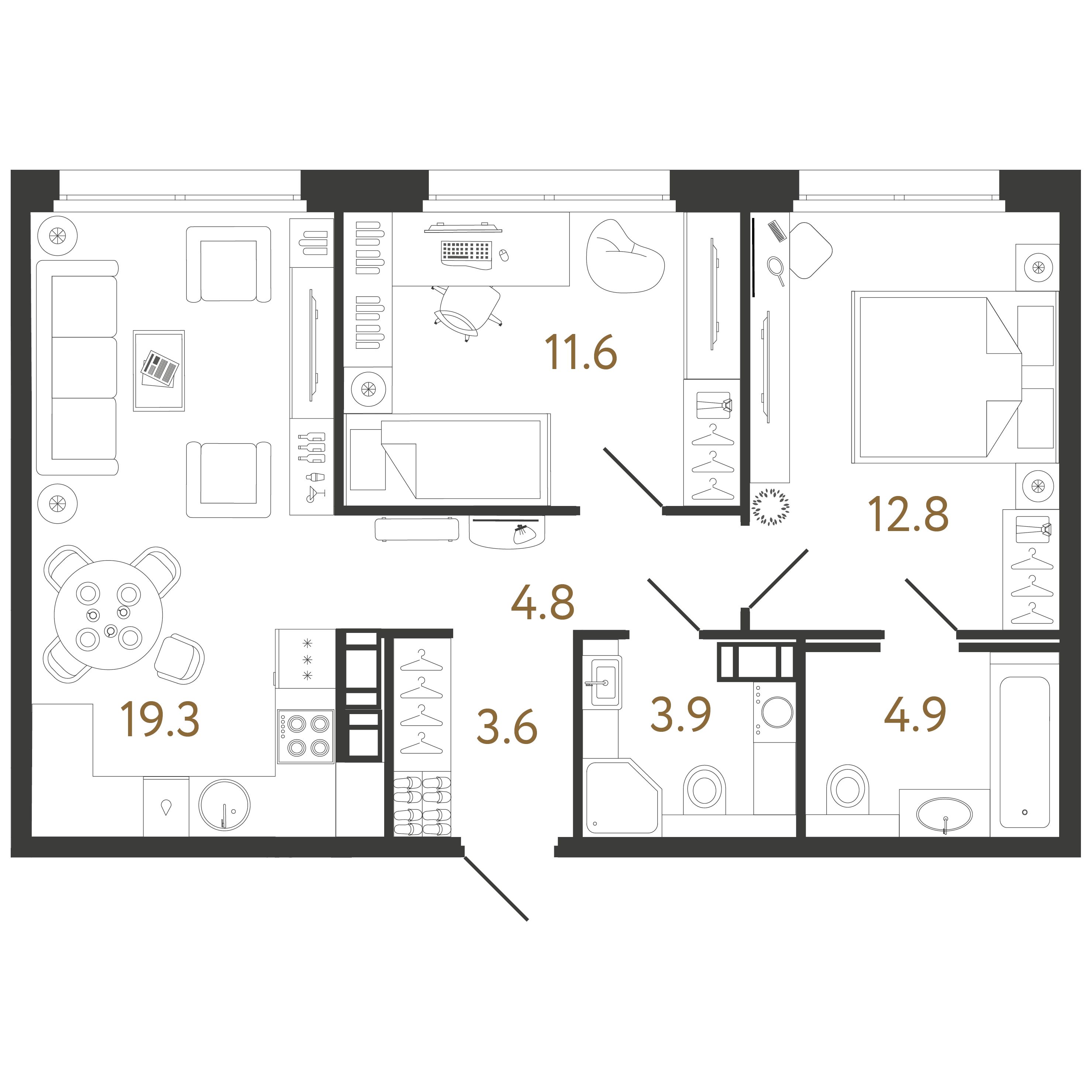 Двухкомнатные квартиры (44 квартиры, 10 планировок)