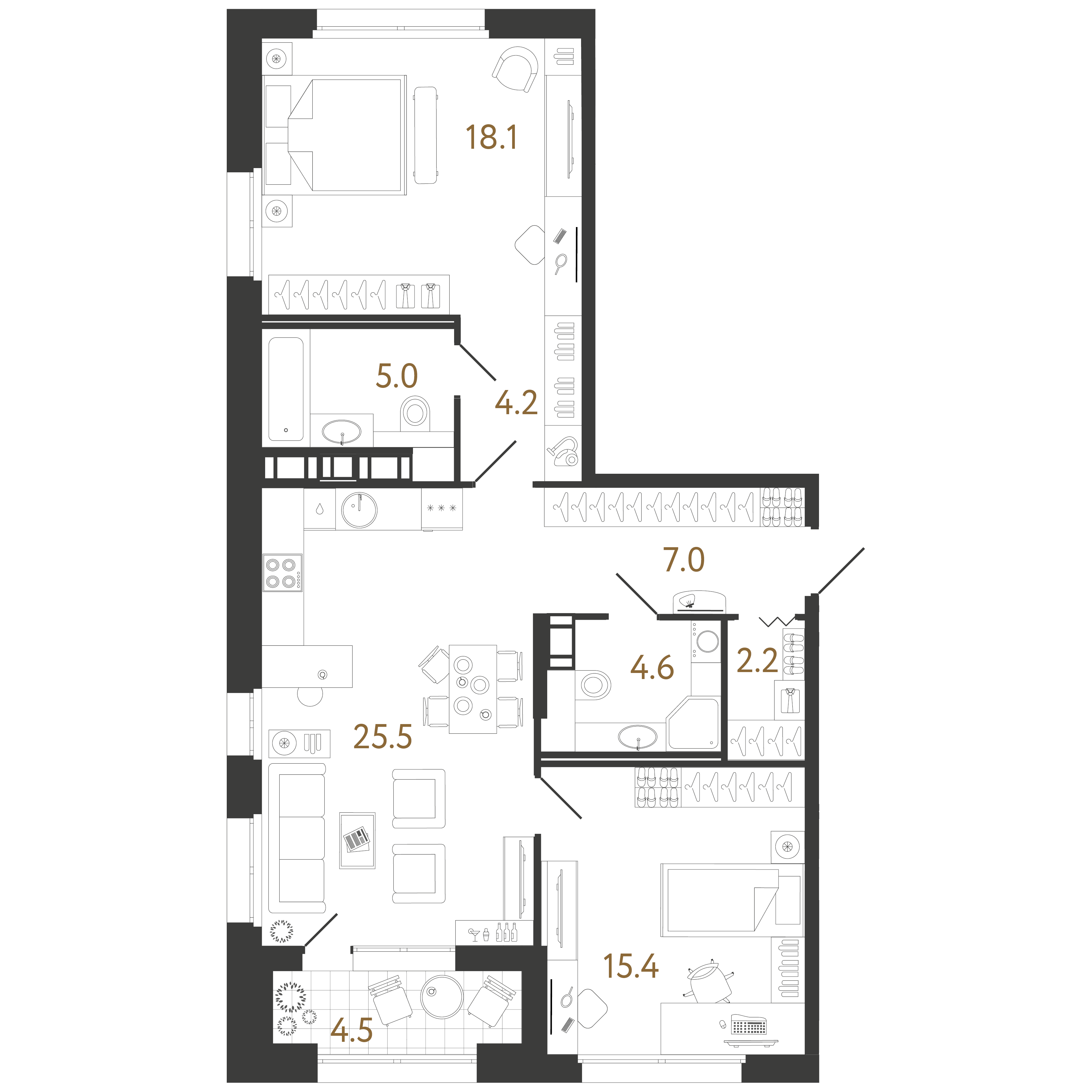 Трехкомнатные квартиры (5 квартир, 1 планировка)