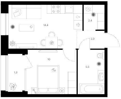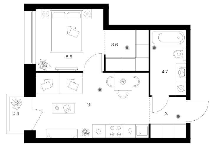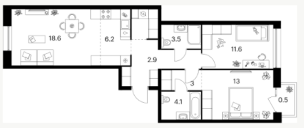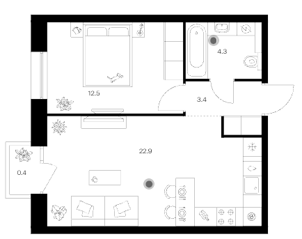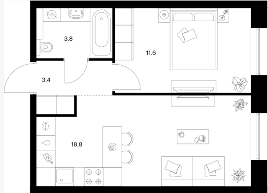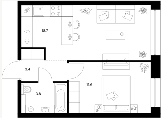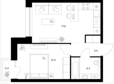 Однокомнатные квартиры (18 квартир, 12 планировок)