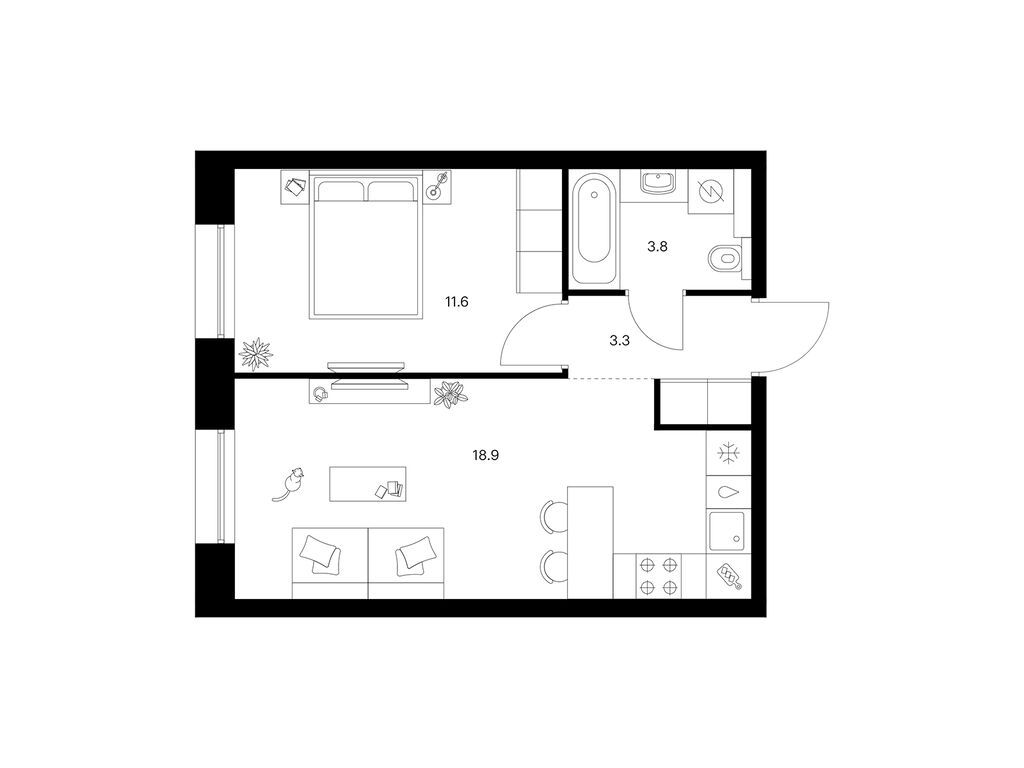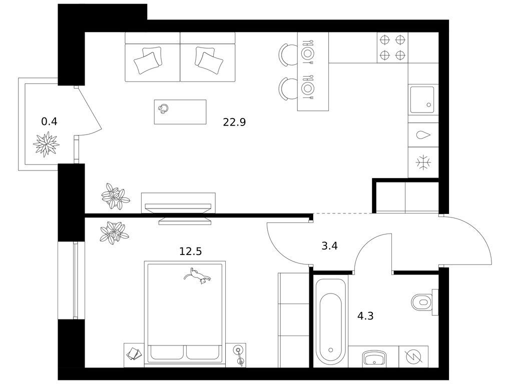 Однокомнатные квартиры (12 квартир, 9 планировок)
