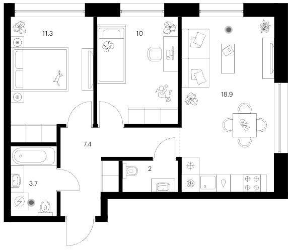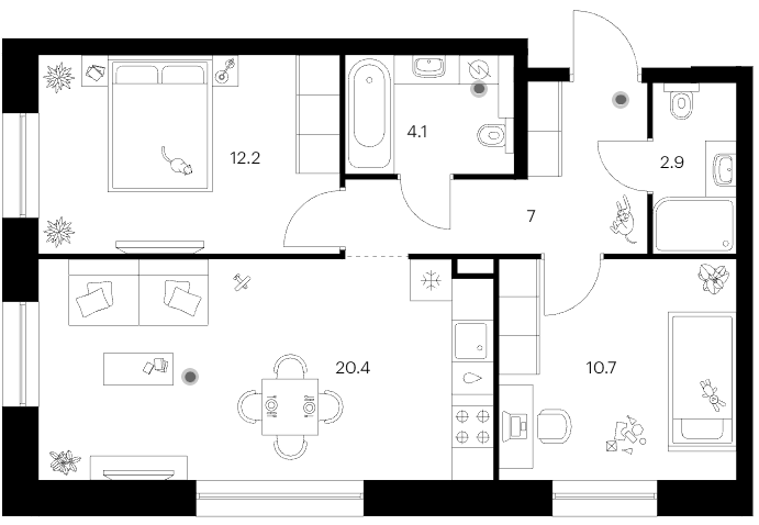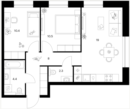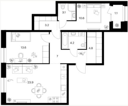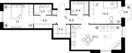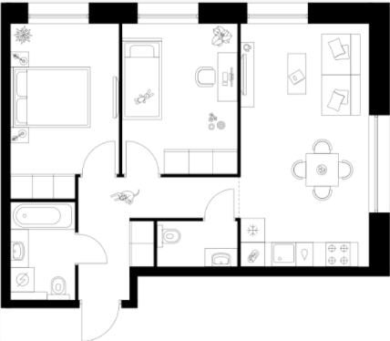 Двухкомнатные квартиры (57 квартир, 26 планировок)