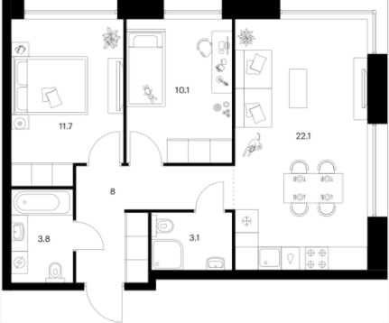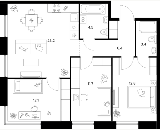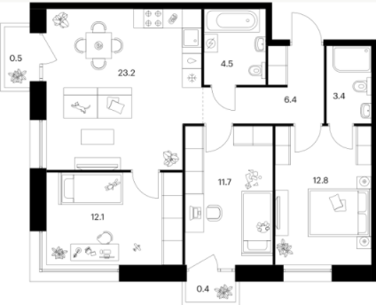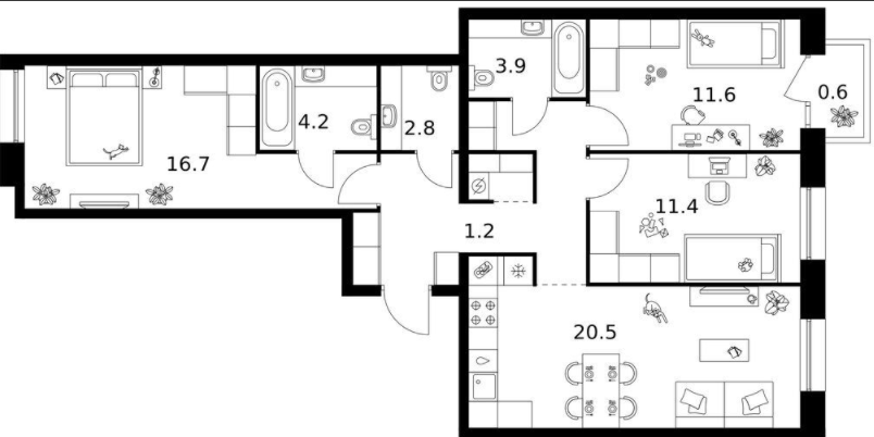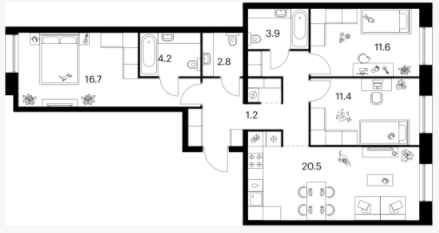 Трехкомнатные квартиры (20 квартир, 11 планировок)