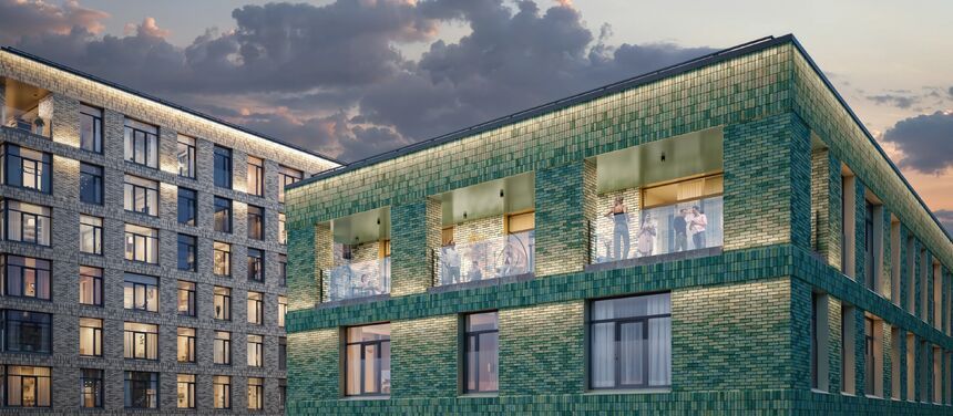 Архитектуру новостройки разрабатывало бюро "Студия 44", фасады будут отделаны кирпичом в теплых оттенках, от светло-бежевого к коричневому. В первом корпусе запланировано шесть 12-этажных секций, объединенных галереей, в которой откроются коммерческие помещения. Застройщик предусмотрел классические планировки и европейские, квартиры предложены от студий до трехкомнатных вариантов. Покупателям предложены квартиры с мастер-спальными, гостевыми санузлами, постирочными, гардеробными и балконом. В стоимость жилья входит предчистовая отделка.