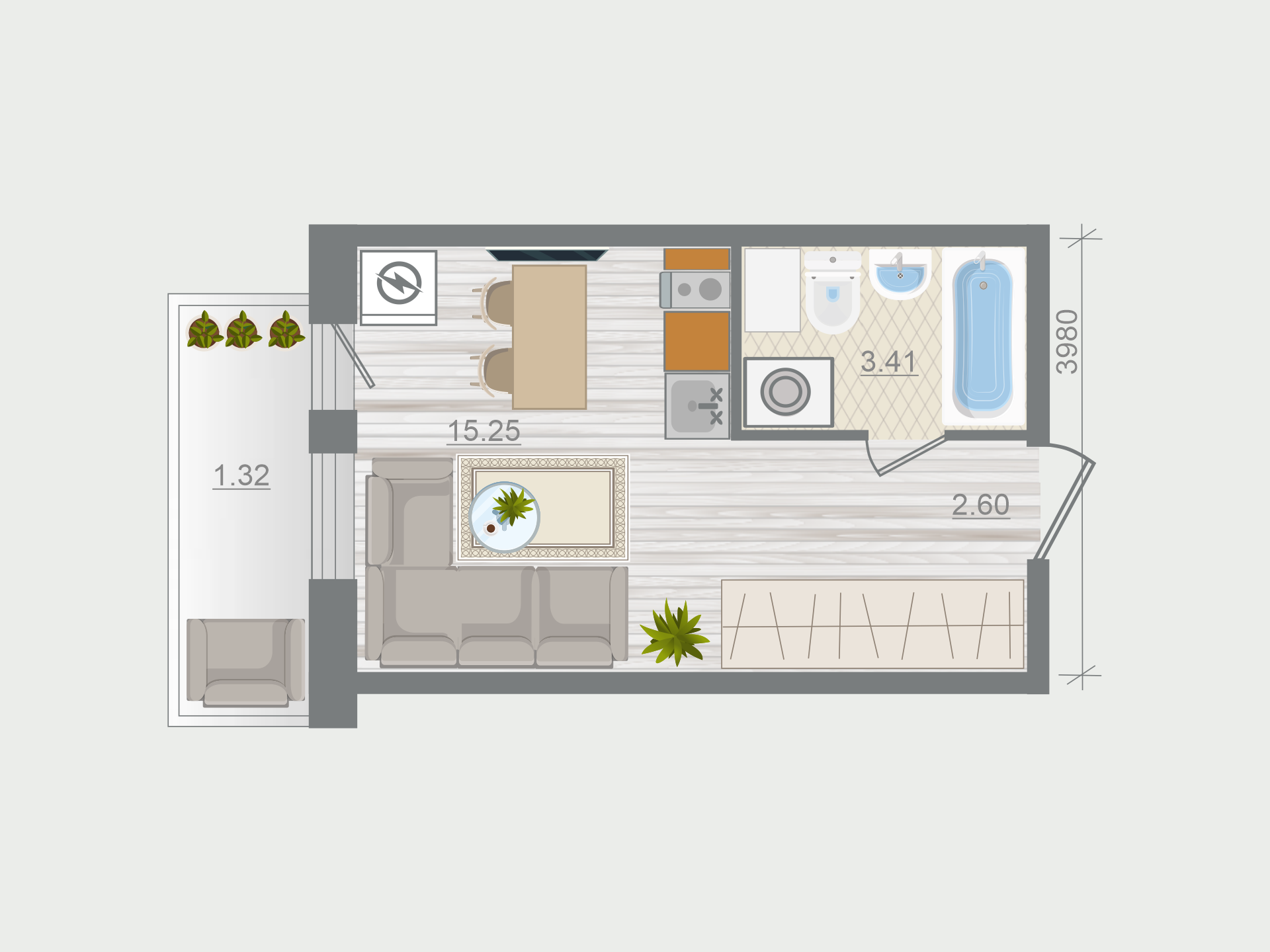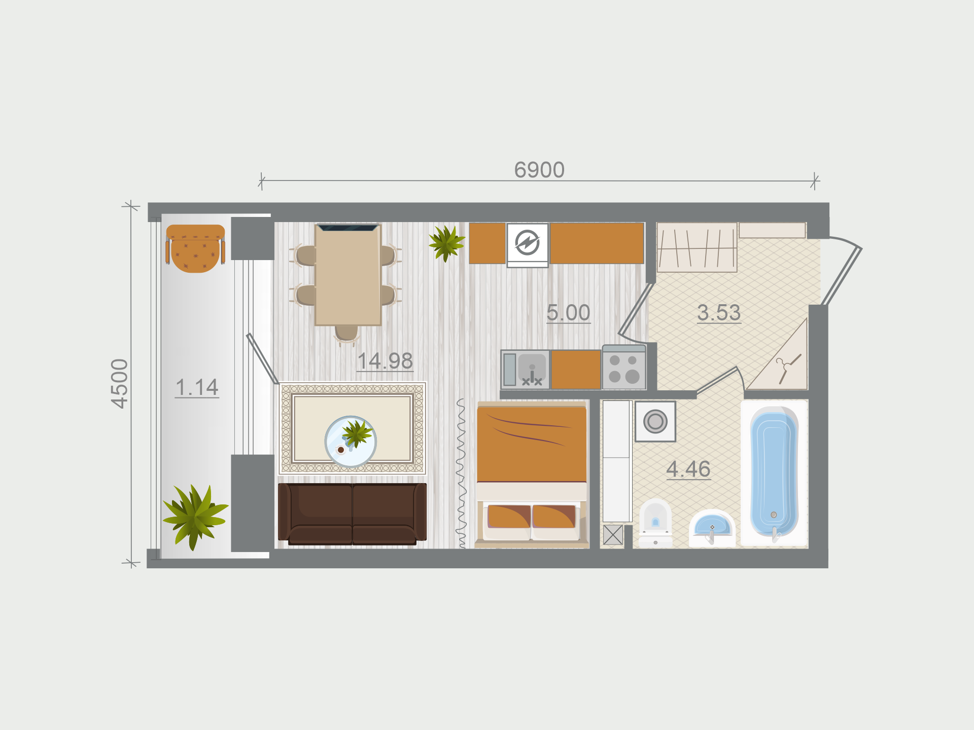 Студия (36 квартир, 15 планировок)